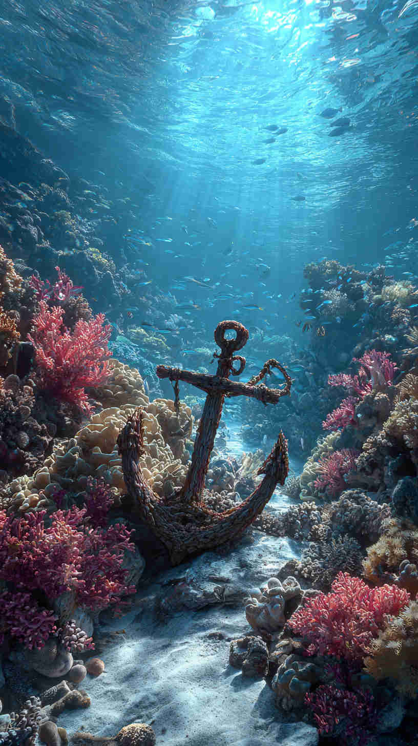 - Nautical Motifs: Anchors in various styles—rustic iron, polished chrome, or rope-wrapped—set against ocean waves, wooden docks, or sandy beaches.