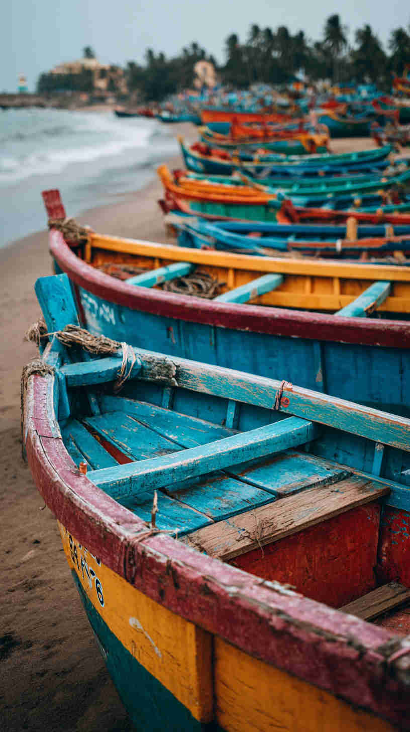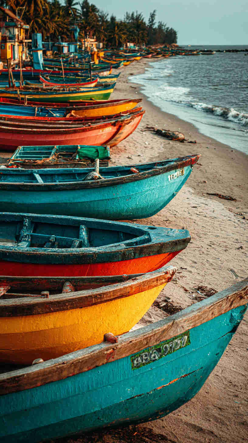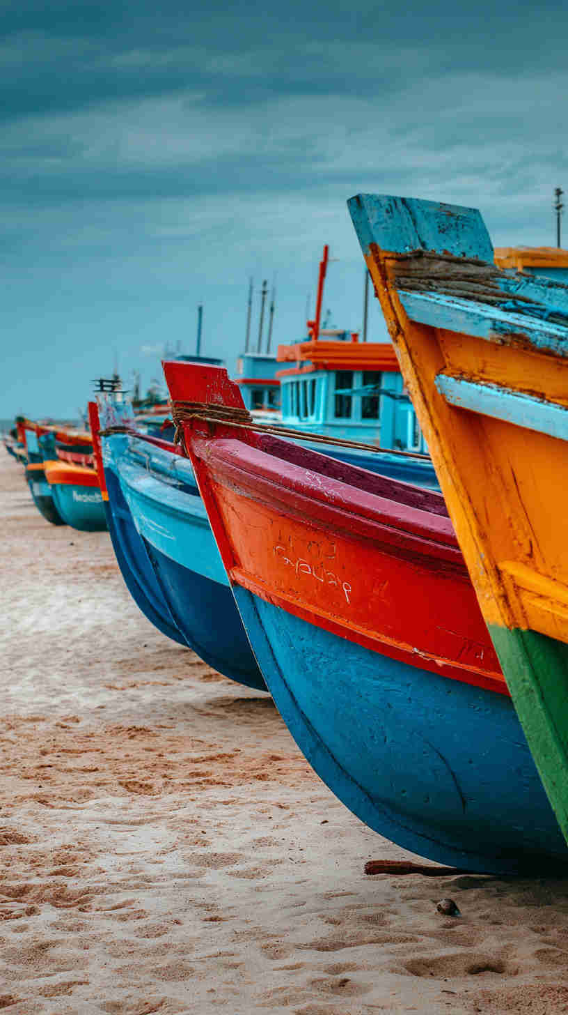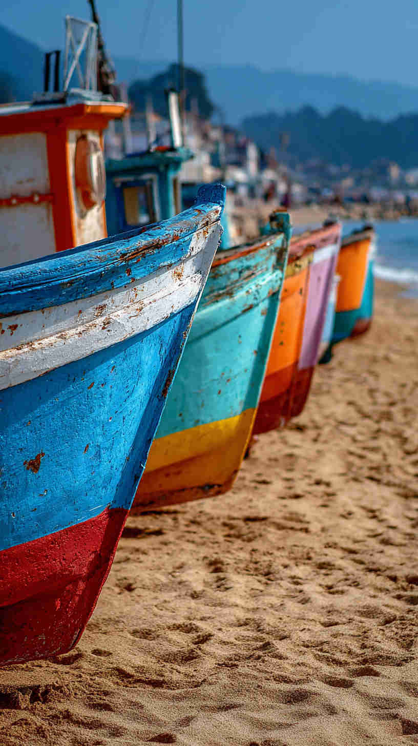 - Vivid Color Schemes: Boats in bold reds, sunny yellows, deep blues, pastel pinks, or even metallic silvers, creating a striking contrast with the sea.