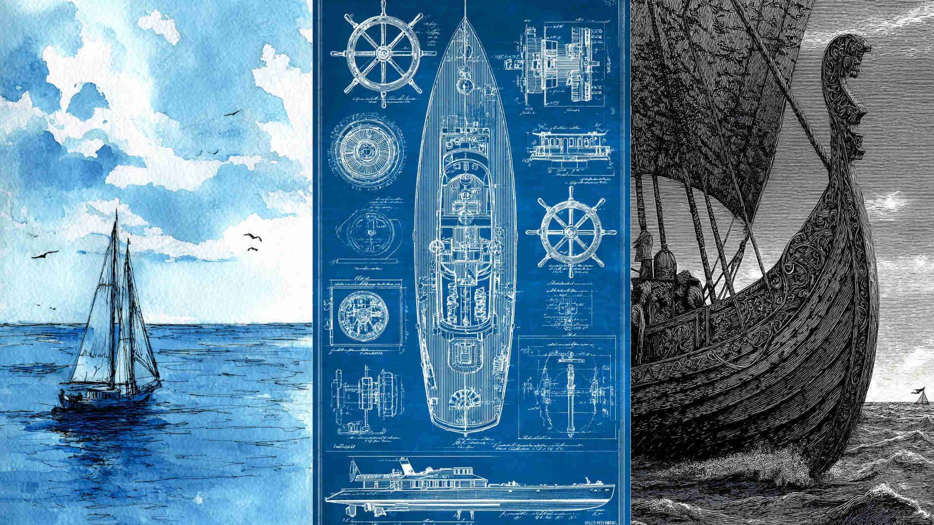 - Vintage Maritime Drawings: Retro-inspired sketches of classic boats, with sepia tones or weathered textures for a nostalgic feel.