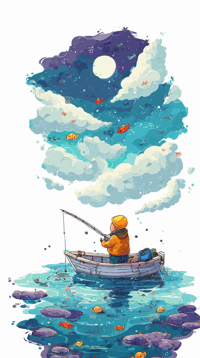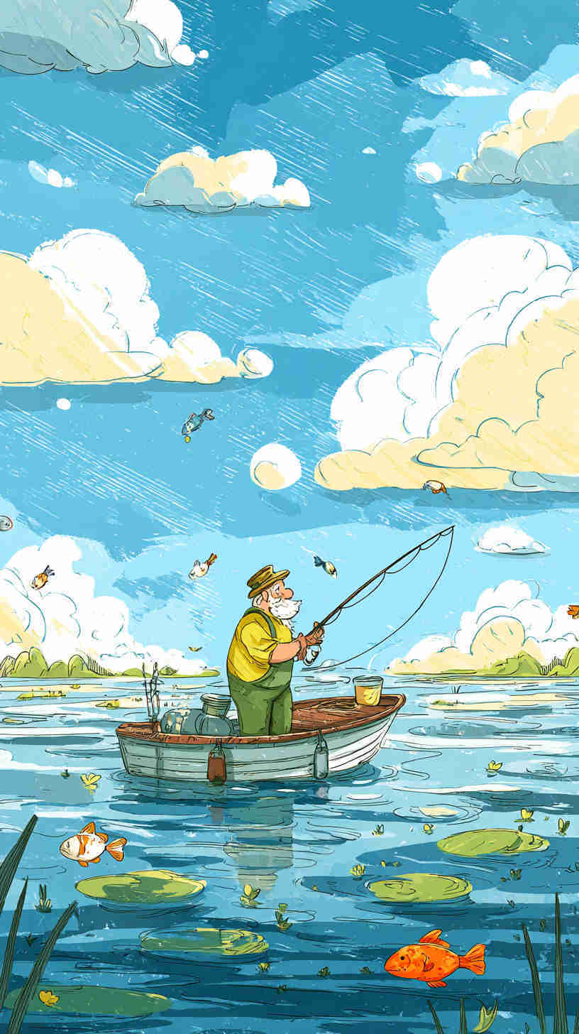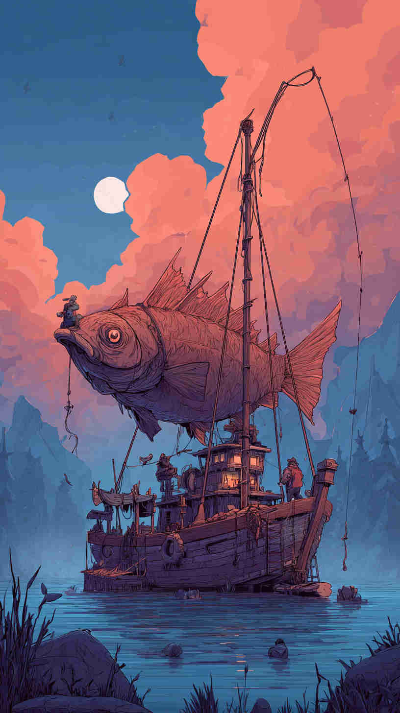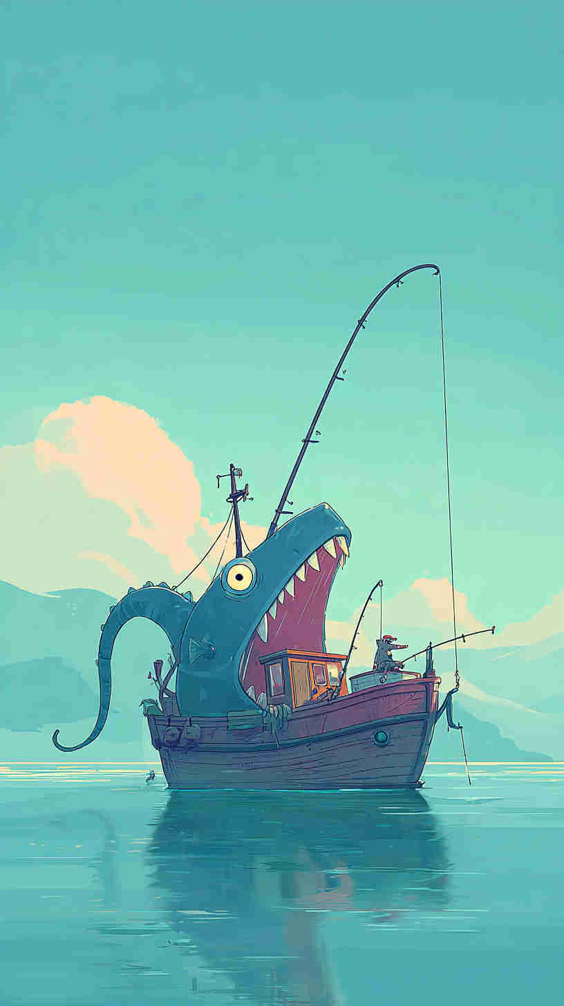 - Cartoonish Fishing Boats: Playful, exaggerated boats with smiling fish or oversized nets, set against vibrant lakes for a fun, lighthearted vibe.