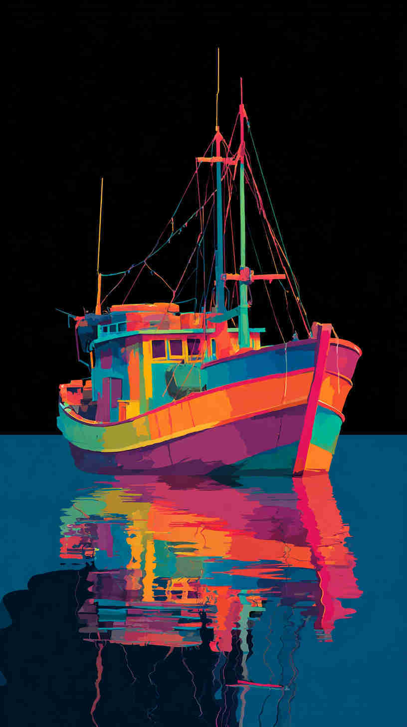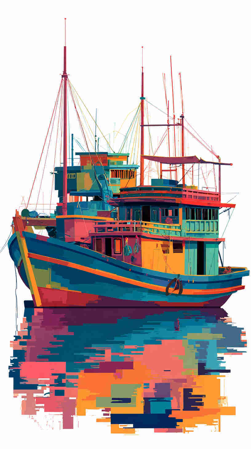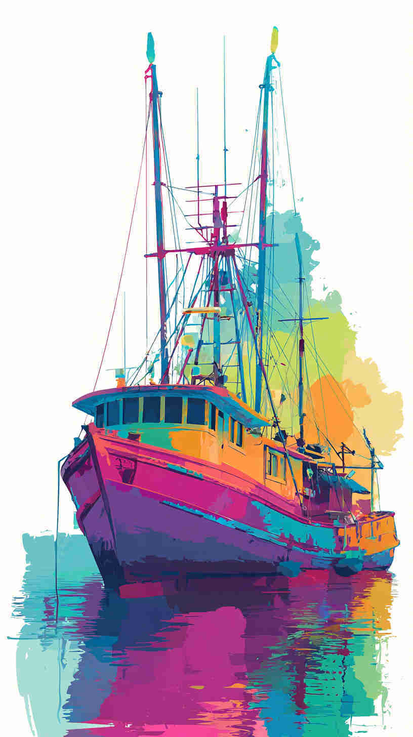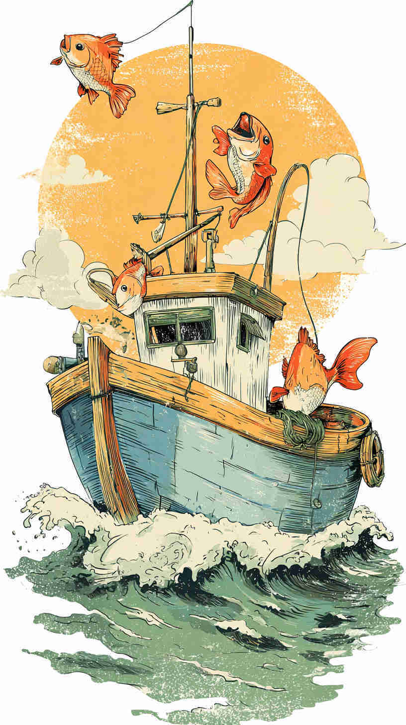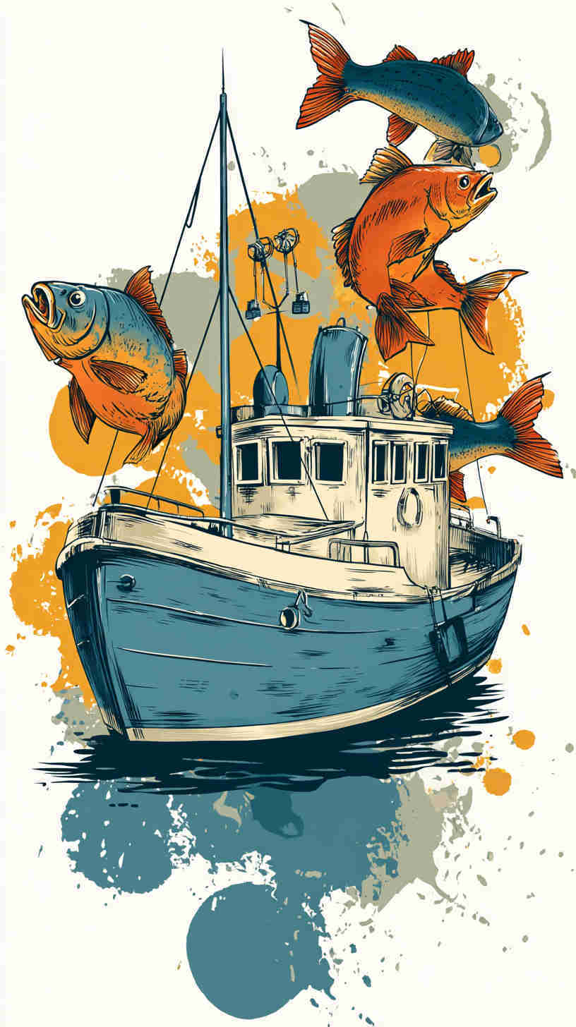 - Stylized Fishing Boats: Playful illustrations of fishing boats, from small rowboats to trawlers, with exaggerated features or vibrant details.