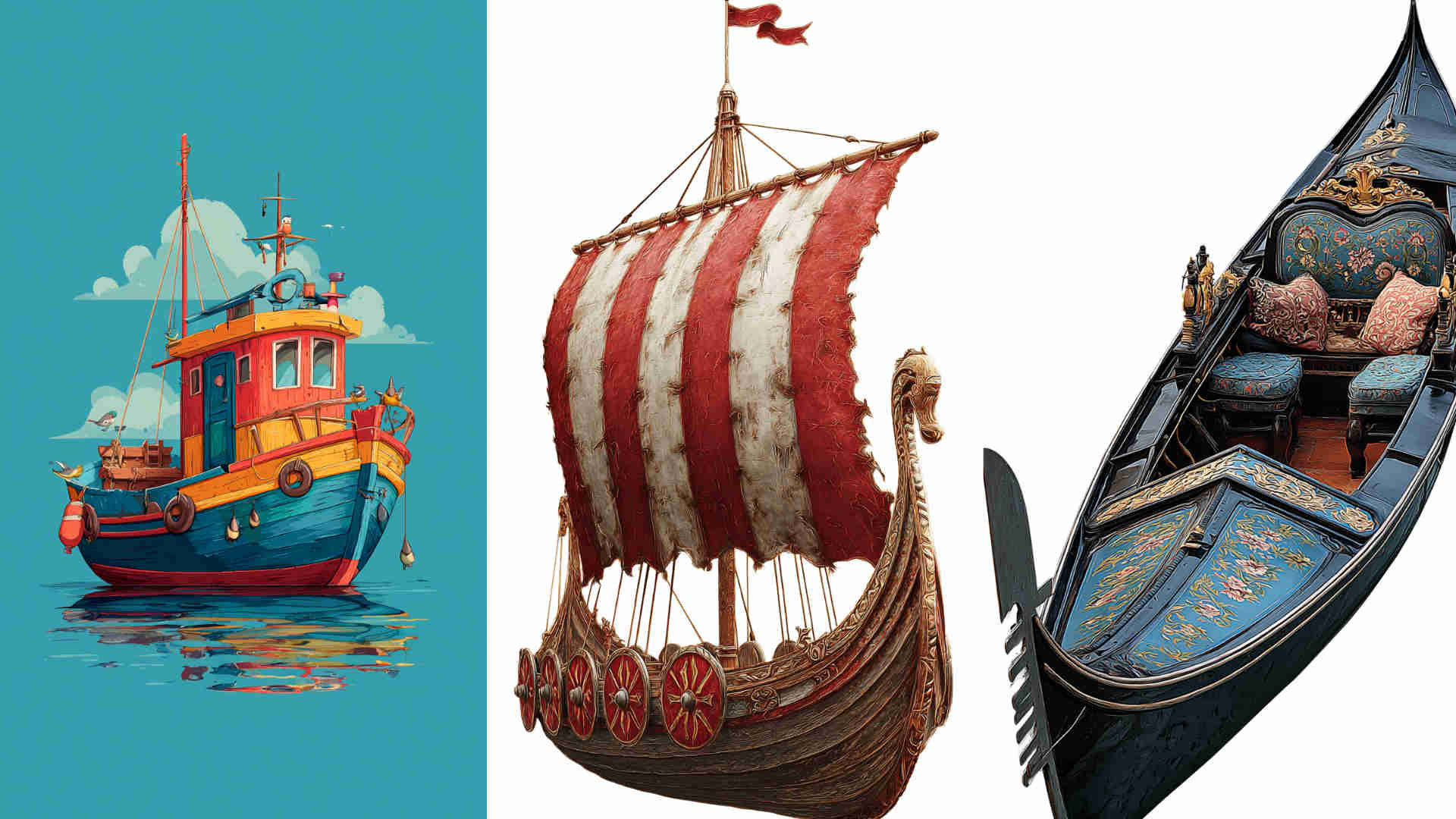- Vivid Color Palettes: Deep blues, crisp whites, warm wood tones, and vibrant accents that highlight the boats’ details against transparent or user-selected backgrounds.