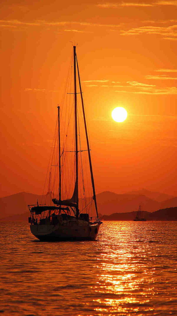 - Nautical Aesthetic Details: High-definition images of boats, featuring sleek yachts with polished decks, sailboats with gently billowing sails, or rustic rowboats with weathered textures, silhouetted against vibrant sunset skies.