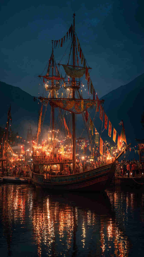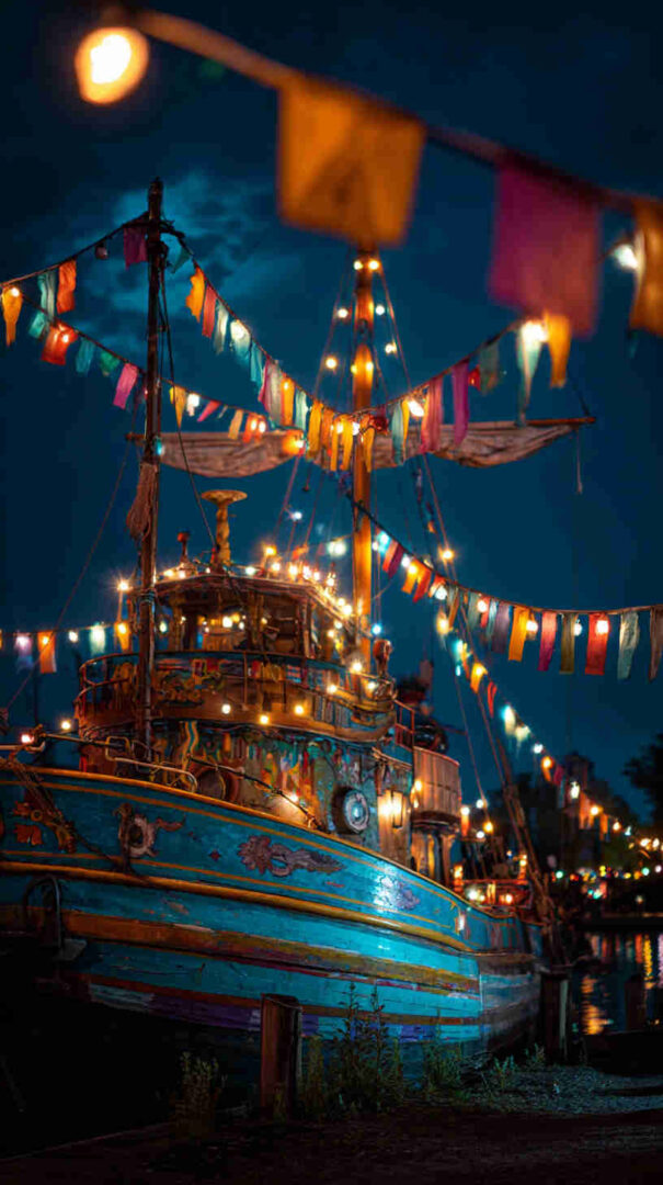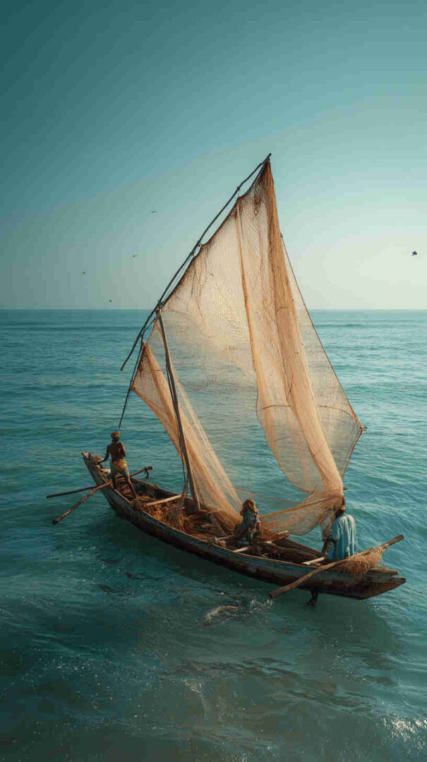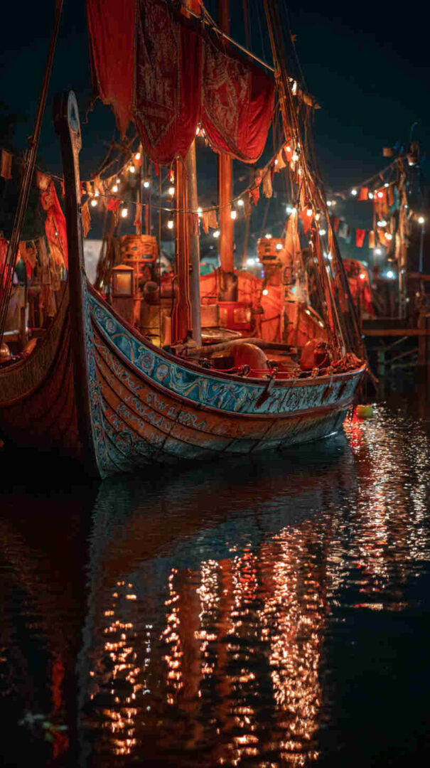 - Dynamic Elements: Details like rippling waves, water reflections, distant horizons, or wildlife such as seabirds or dolphins, emphasizing the boat’s journey through a vibrant aquatic environment.