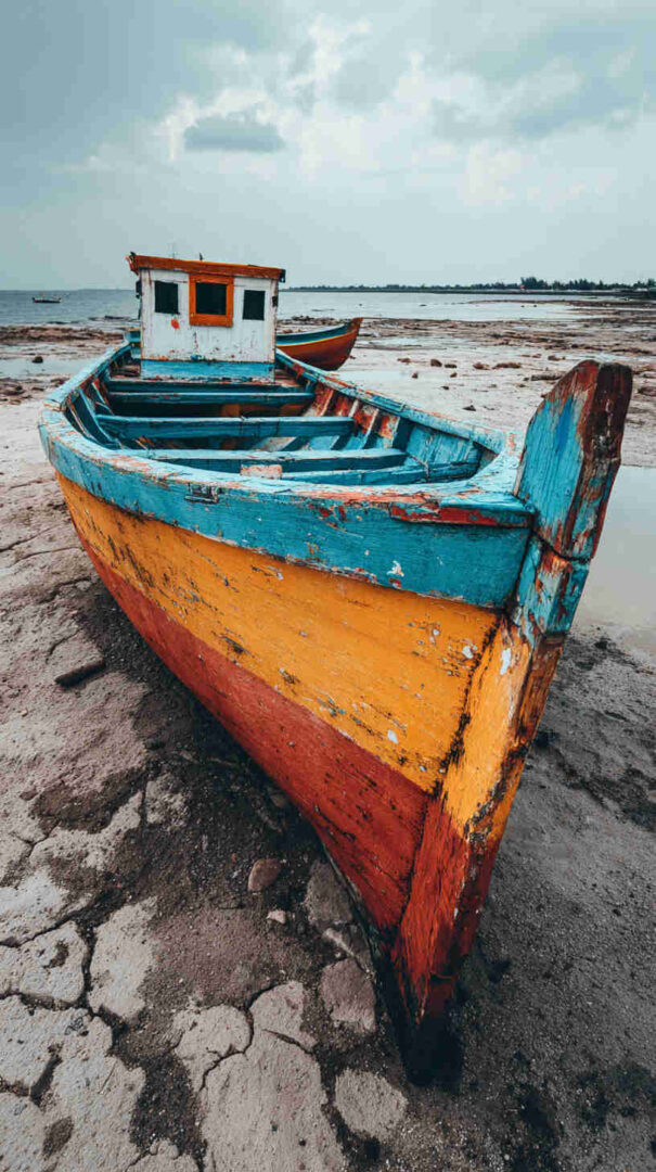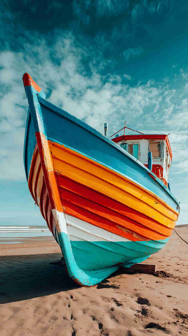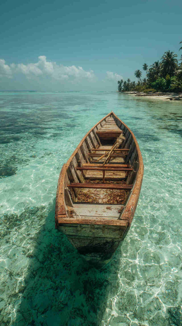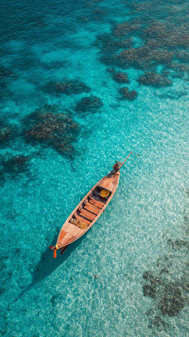- Tropical Water Escapes: Vibrant boats in coral-rich tropical seas with palm-lined shores or vibrant sunsets, evoking an exotic, adventurous feel.