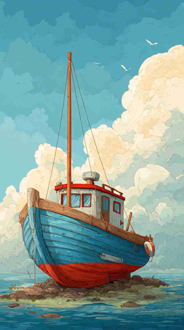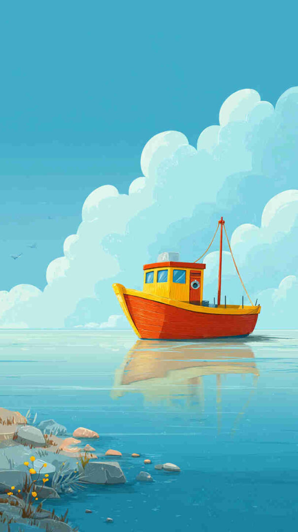 - Minimalist Cartoon Boats: Clean, modern cartoon boats with bold outlines and simple backgrounds, blending minimalism with playful nautical vibes.