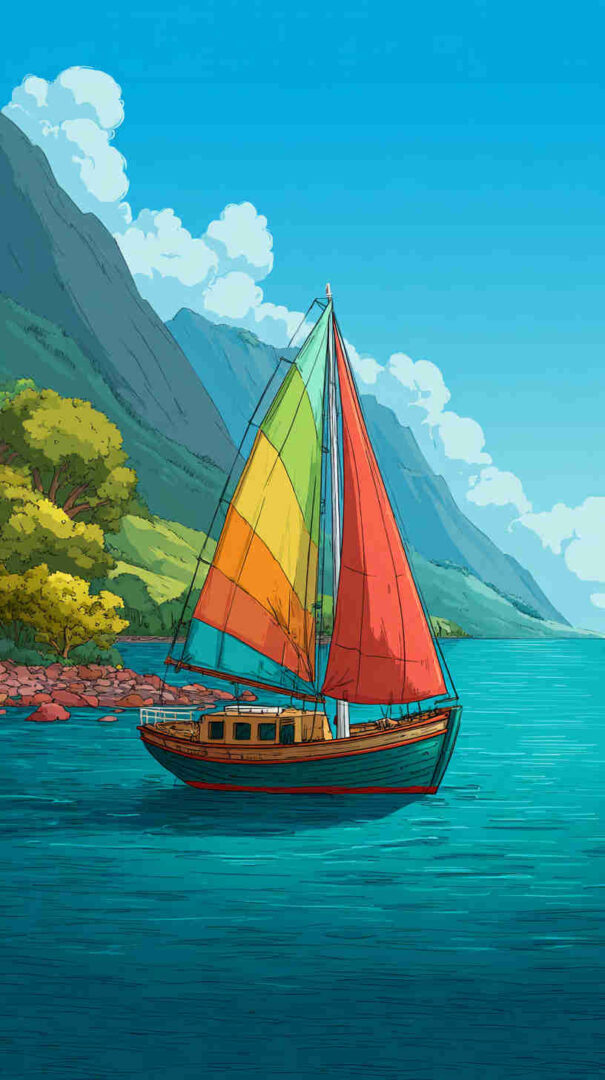 - Cheerful Sailboat Adventures: Brightly colored sailboats with smiling faces or bold sails, sailing across cartoon seas with puffy clouds and friendly dolphins.
