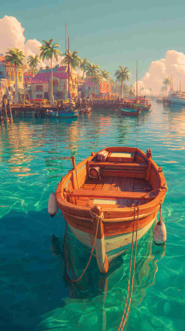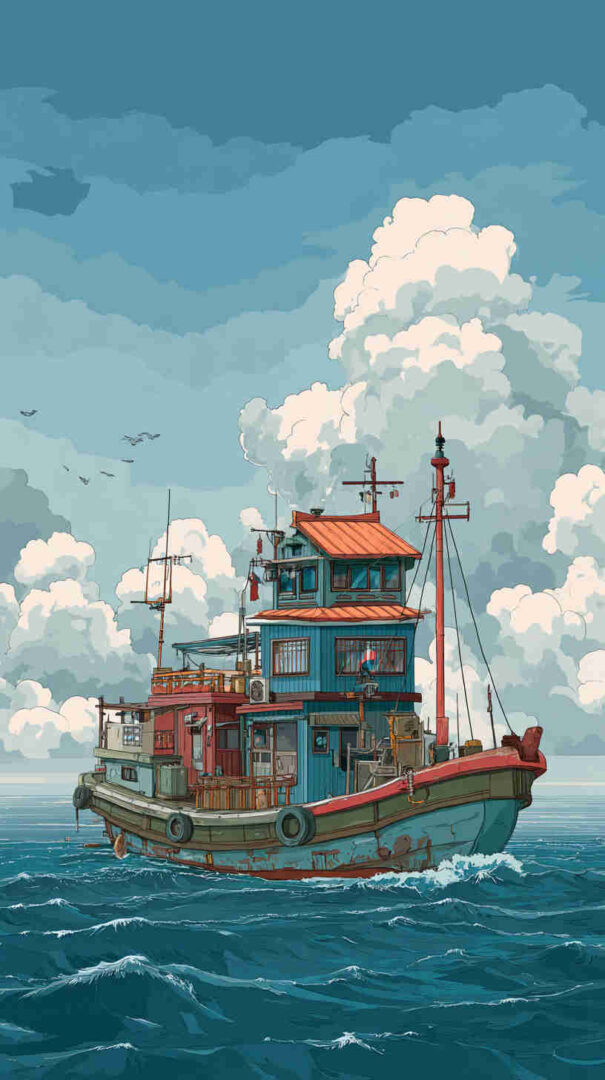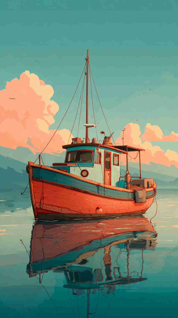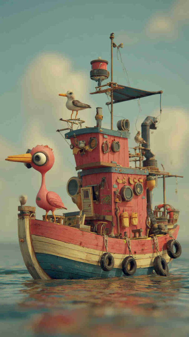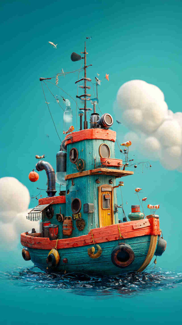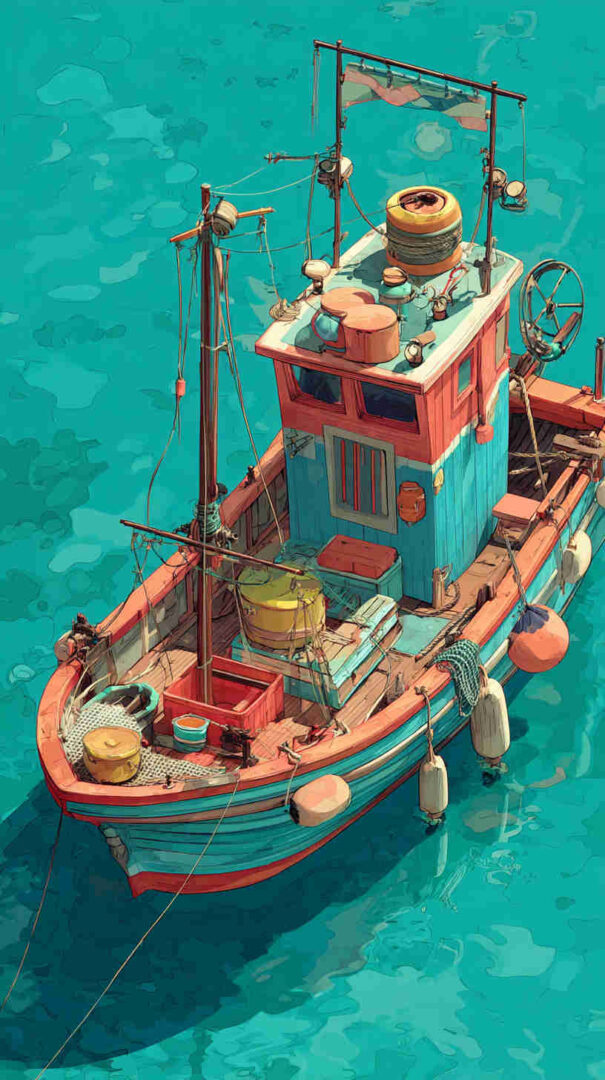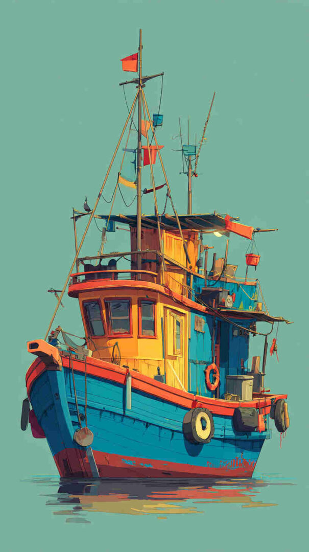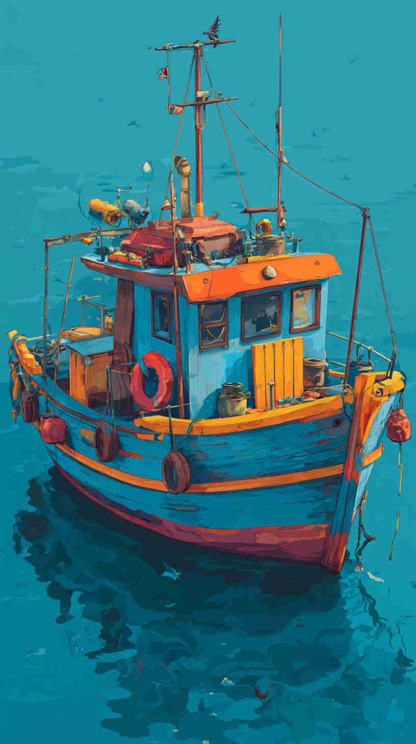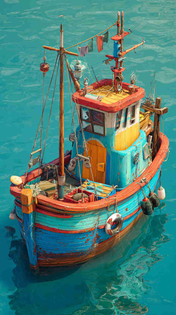- Quirky Fishing Boats: Playful fishing boats with exaggerated features, docked in colorful harbors with cartoon fish or lighthouses, evoking coastal charm.
