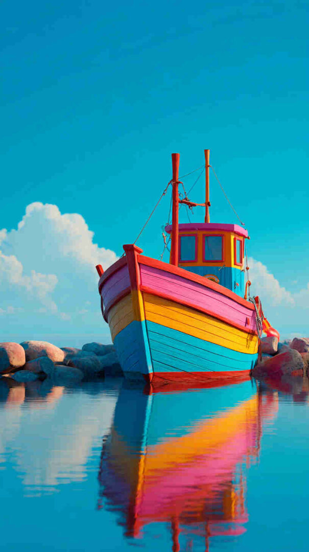 A 4K wallpaper featuring a cheerful cartoon sailboat on a vibrant sea or a quirky fishing boat in a colorful harbor can turn your living room’s TV or digital frame into a lively focal point. The bright colors and whimsical motifs create a fun, inviting atmosphere that pairs well with modern, eclectic, or family-friendly decor.