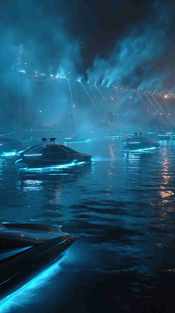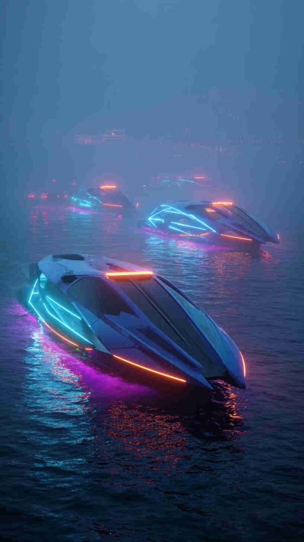 Hydro heads are hooked on the reborn Miss Century hydroplane, reimagined with modern carbon skin for the Atomic Cup, frozen in a barrel-roll blur over Lake Washington – planks popping with every wavelet, a fresh take that bridges 1950s swagger with 2025 stealth. Sustainability set worships the bio-propelled Aquila Racer from the Eco-Offshore Series, rendered slicing a fjord fjord in Norway’s midnight sun, kelp-free props spinning clean trails that whisper “green without compromise.”