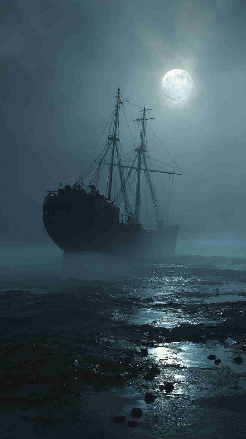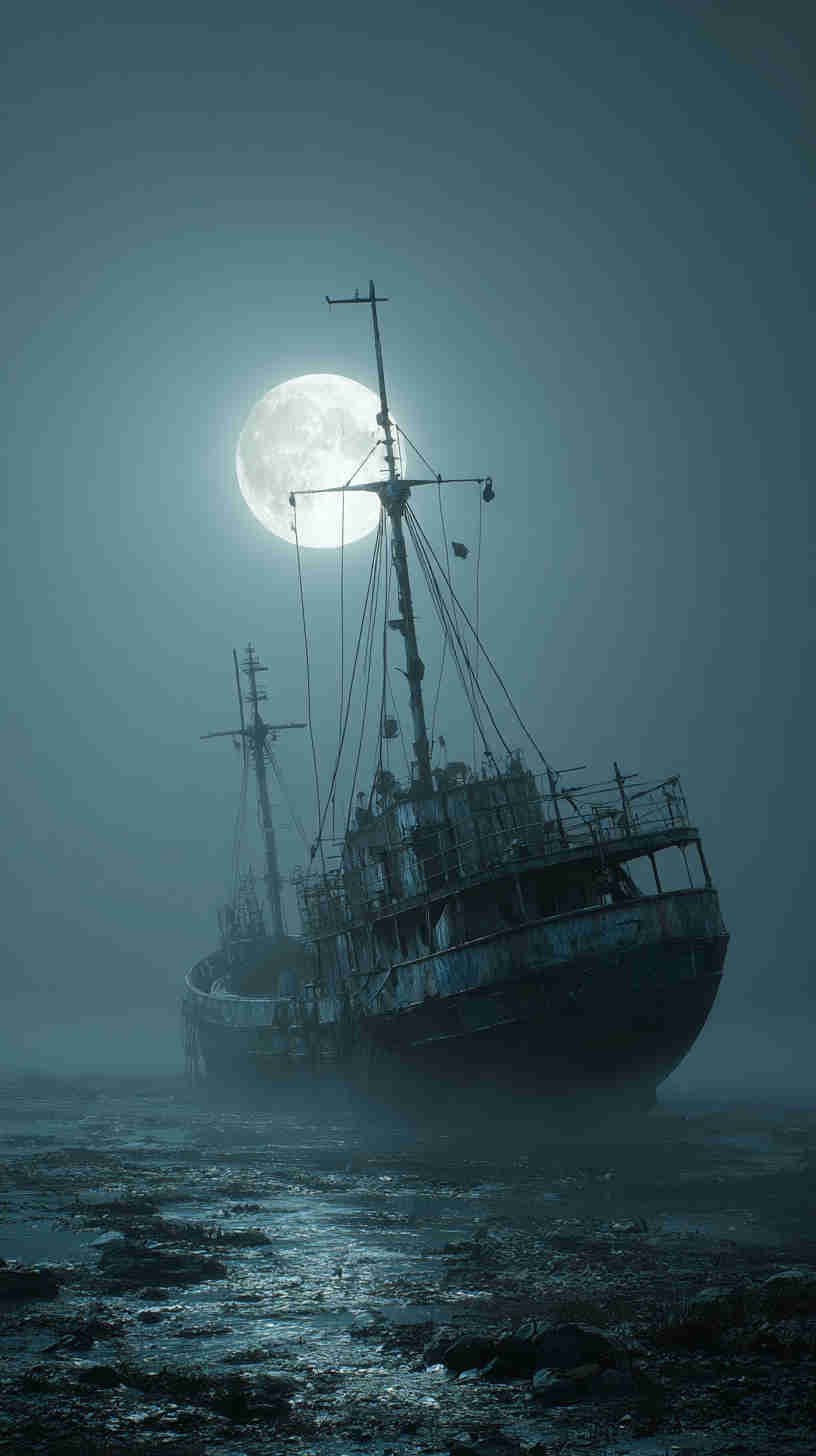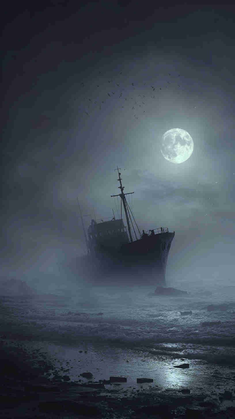 The mood mesmerizes—monochrome mists merging with midnight blues, silhouettes sharp against stormy skies, subtle spotlights from distant lighthouses slicing through swirling fog. In an era echoing enigmatic escapes—amid gothic revivals and noir narratives—these images aren’t mere motifs; they’re atmospheric anchors, asserting: Why bask in brightness when darkness delivers depth? They transcend the tide of tranquil tropics and tame trawlers, tendering a tribute to nautical’s nocturnal nobility—a visual vortex for the virtually voyaging visionary in 2025’s moody maritime moment.