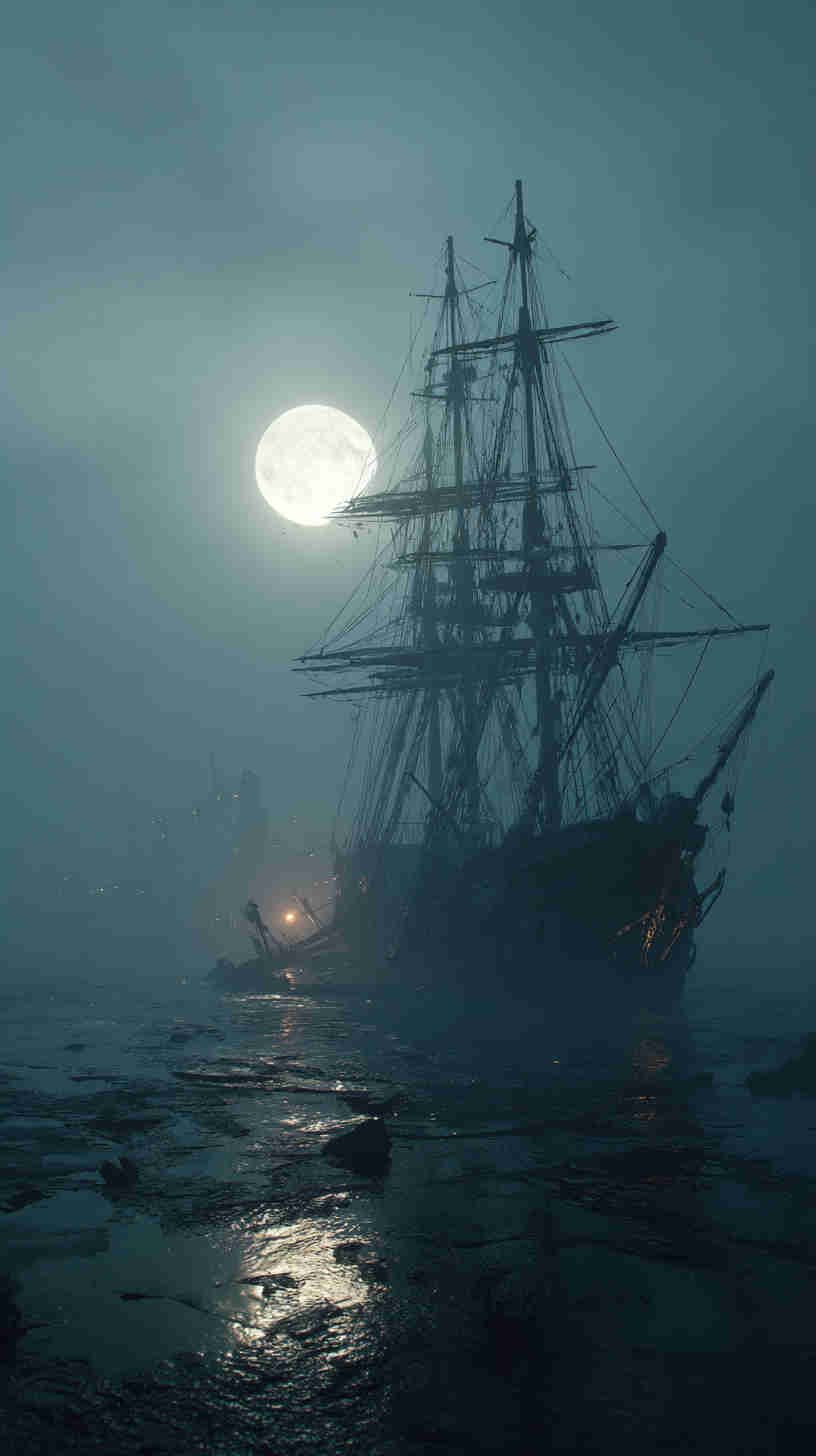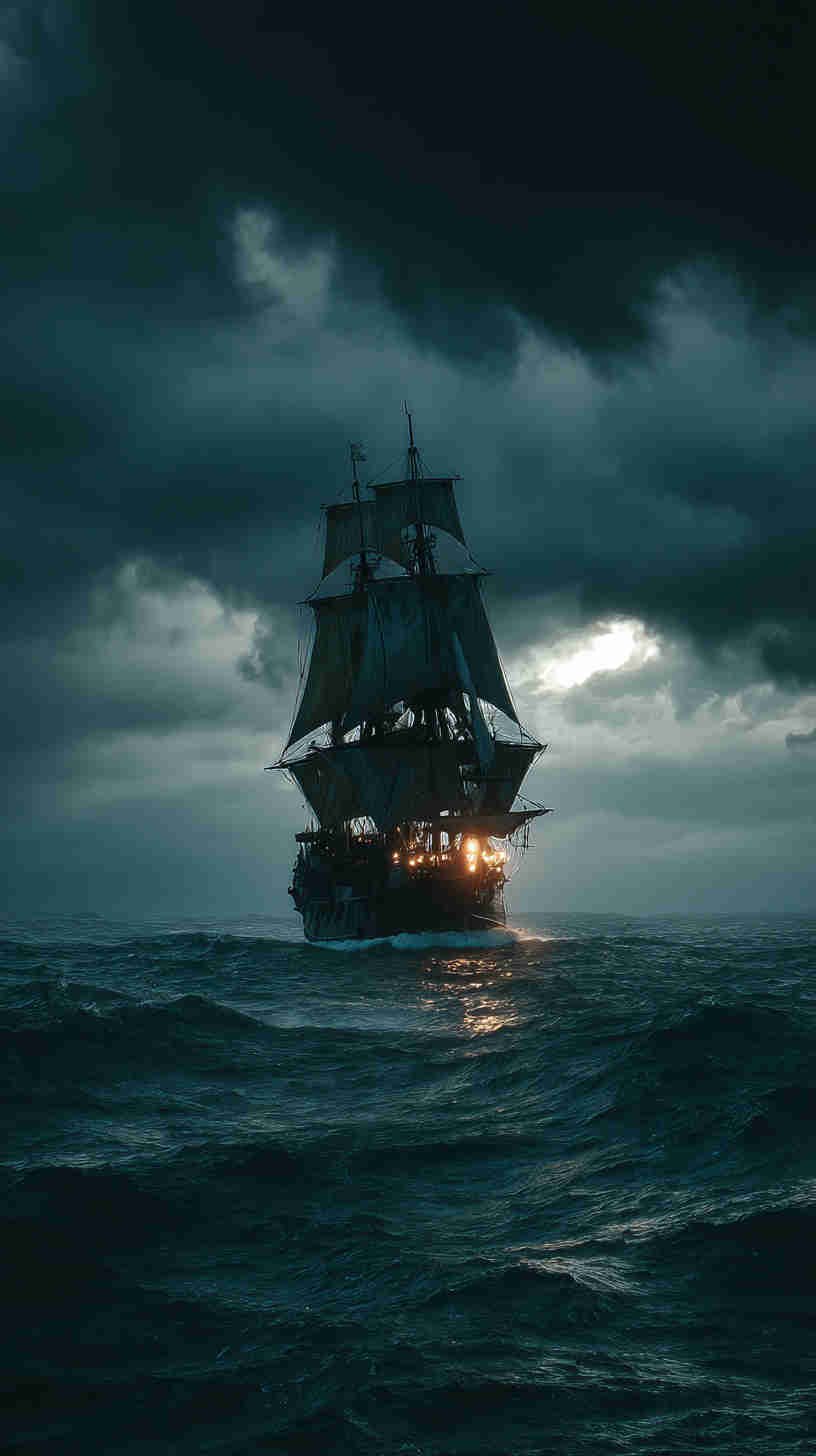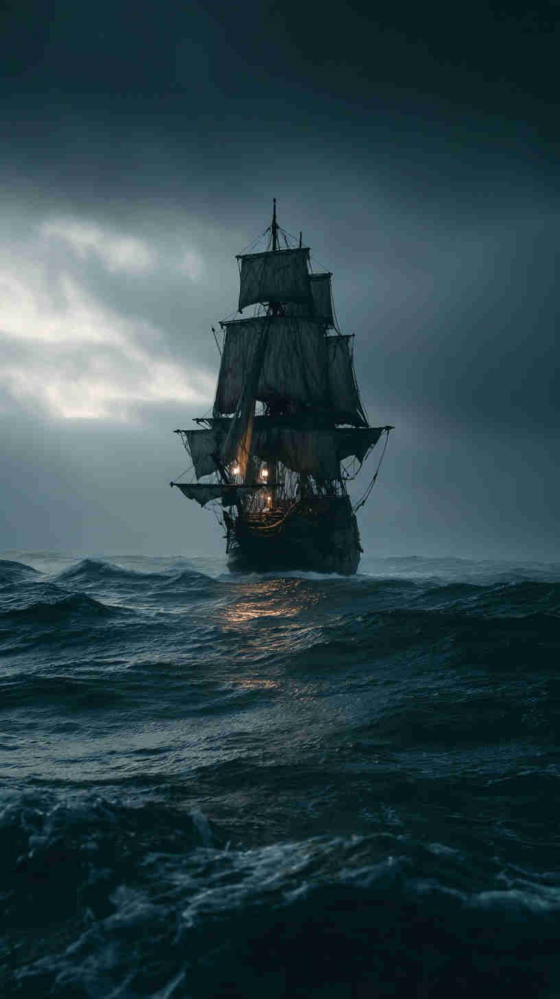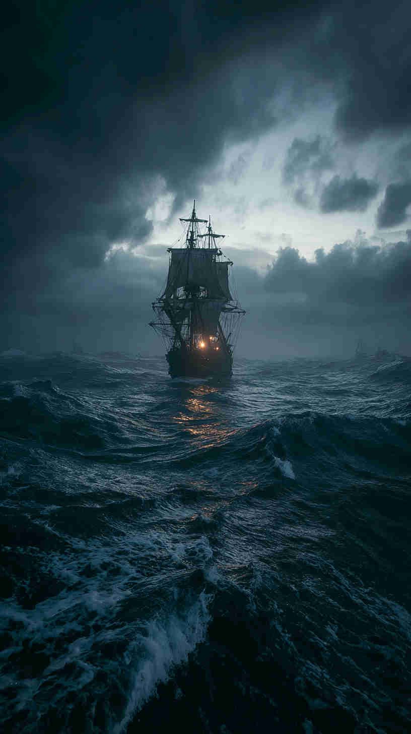 Dark nautical aesthetics trace their tides to Romanticism’s stormy seas—Turner’s turbulent tempests and Friedrich’s foggy frontiers evoking the sublime terror of nature’s untamed power. In 4K HD, modern masters magnify the mystery: Ghost ships like the Flying Dutchman legend rendered in volumetric vapor, lighthouses as lone sentinels in Lovecraftian lows, or shipwrecks skeletal against sullen swells.