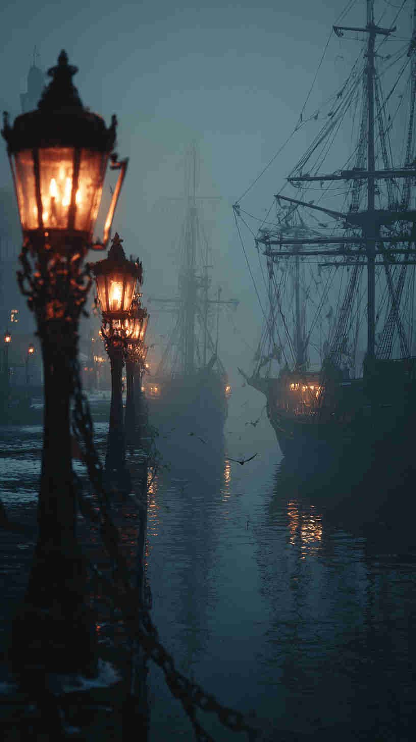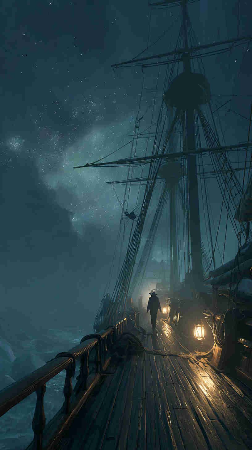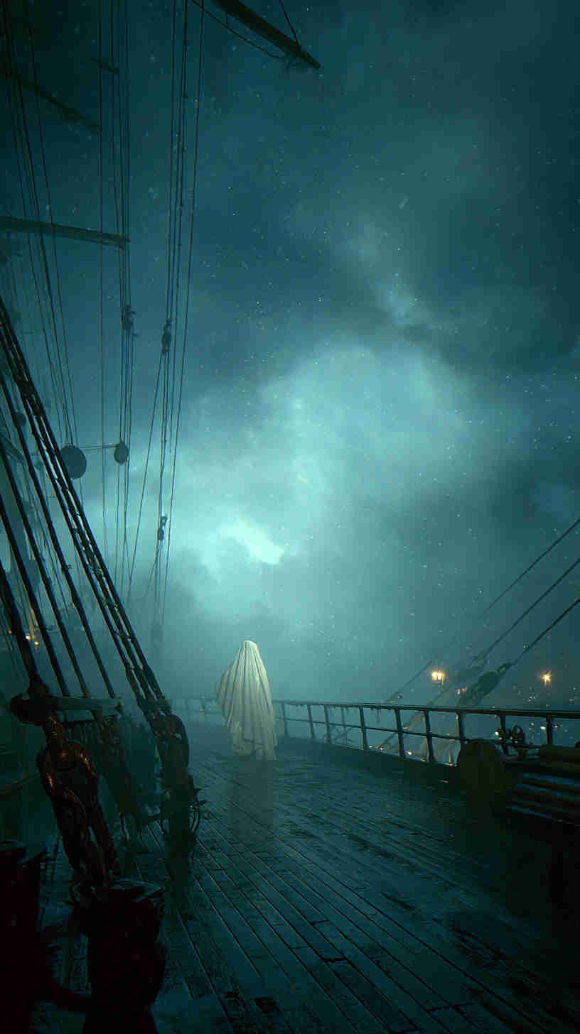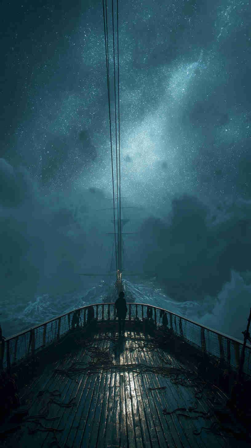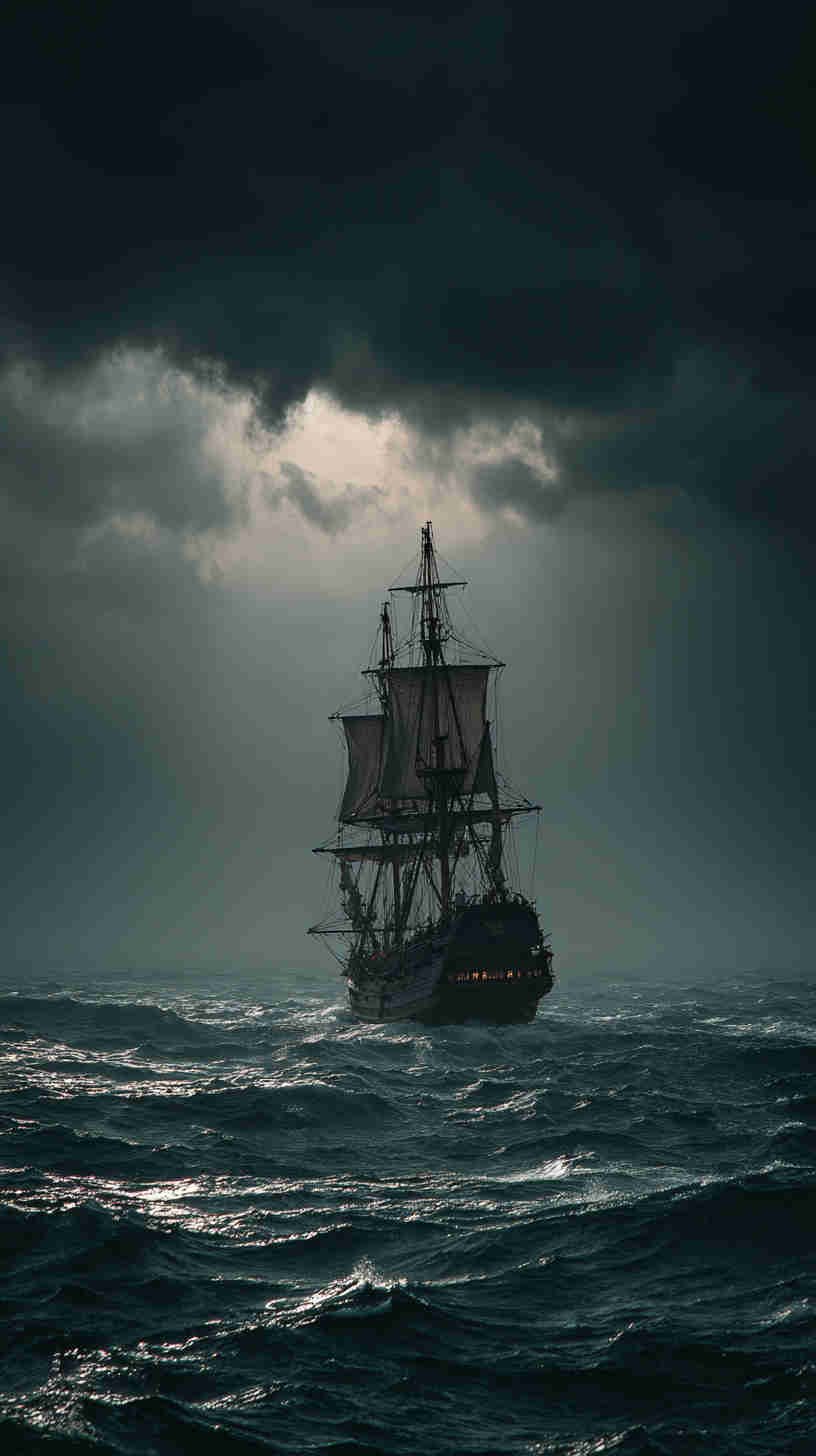 Dark nautical aesthetics trace their tides to Romanticism’s stormy seas—Turner’s turbulent tempests and Friedrich’s foggy frontiers evoking the sublime terror of nature’s untamed power. In 4K HD, modern masters magnify the mystery: Ghost ships like the Flying Dutchman legend rendered in volumetric vapor, lighthouses as lone sentinels in Lovecraftian lows, or shipwrecks skeletal against sullen swells.