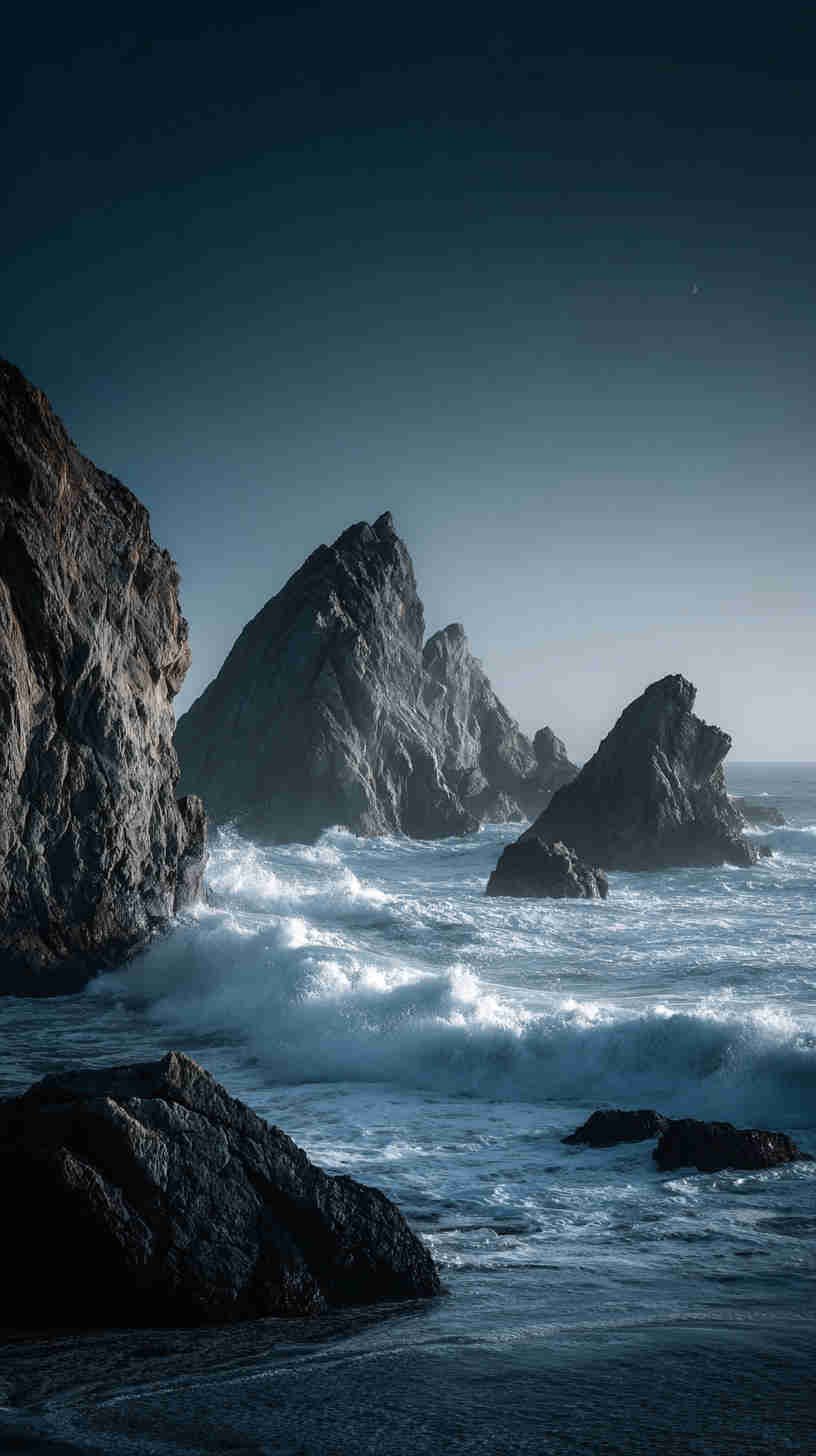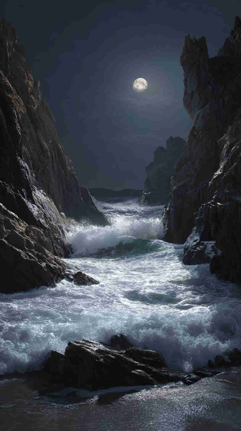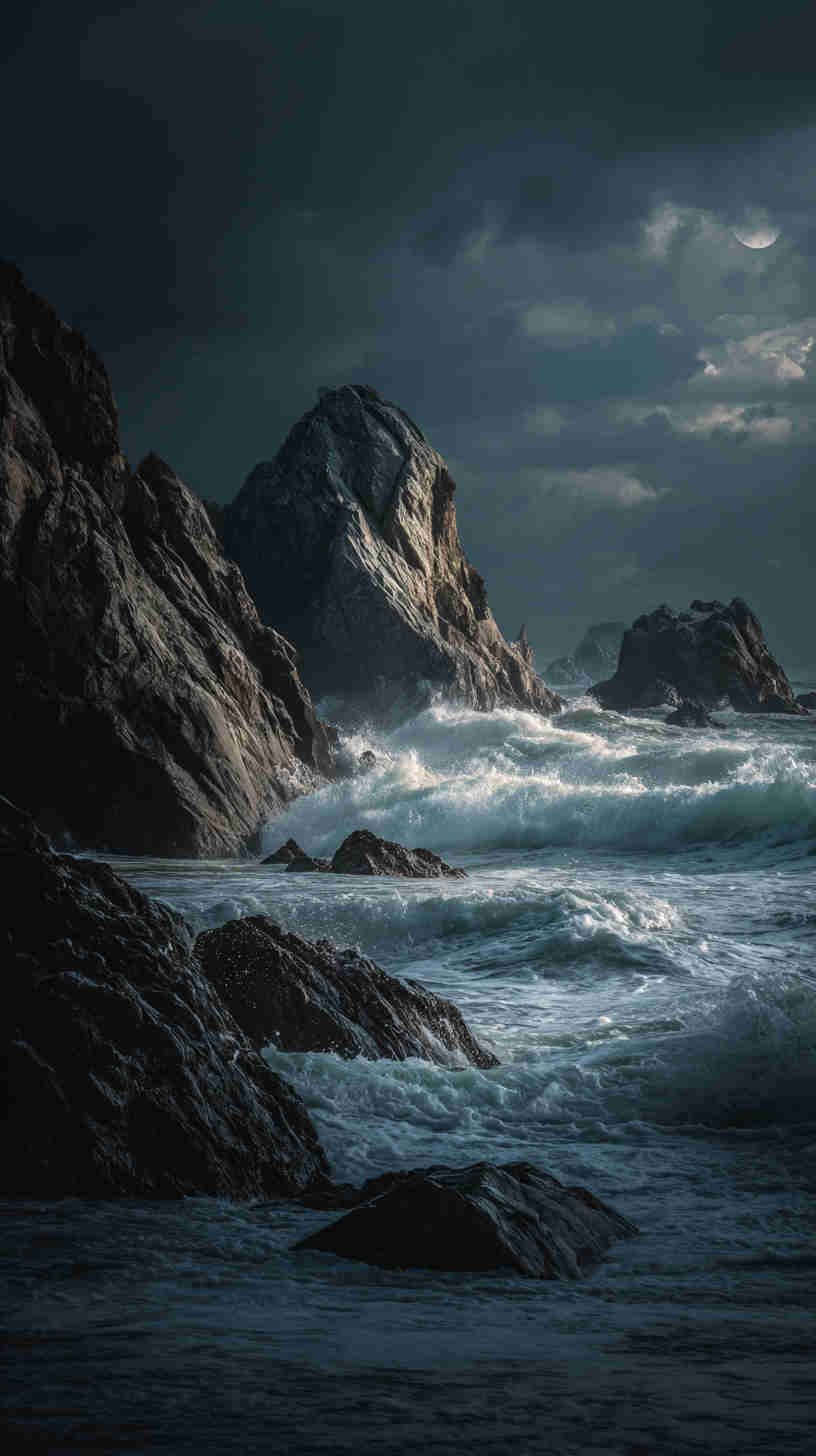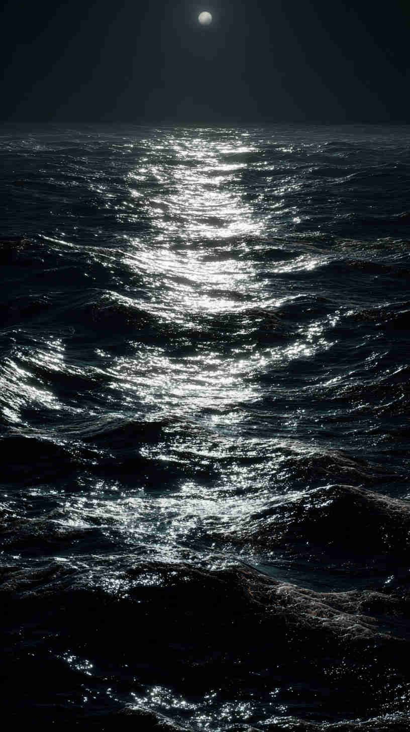 The mood mesmerizes—monochrome mists merging with midnight blues, abyssal blacks swallowing silhouettes, subtle spotlights slicing through swirling swells. In an era echoing enigmatic escapes—amid noir revivals and contemplative creatives—these images aren’t mere motifs; they’re atmospheric anchors, asserting: Why bask in brightness when darkness delivers depth? They transcend the tide of tranquil tropics and tame tides, tendering a tribute to the sea’s sinister symphony—a visual vortex for the virtually voyaging visionary in 2025’s moody marine moment.