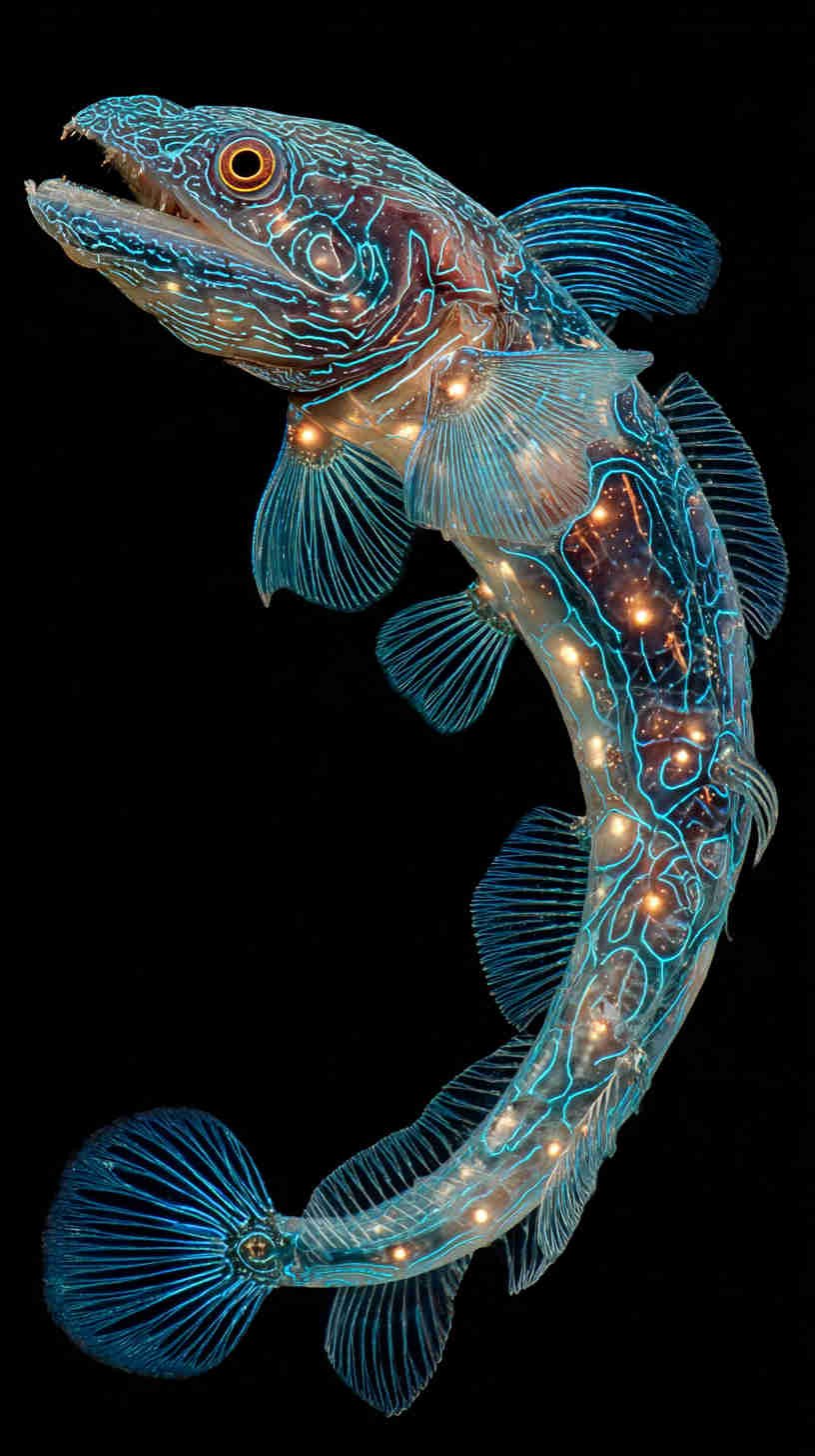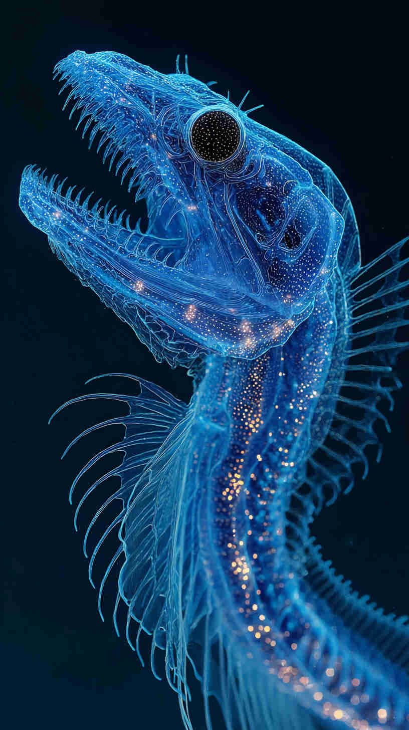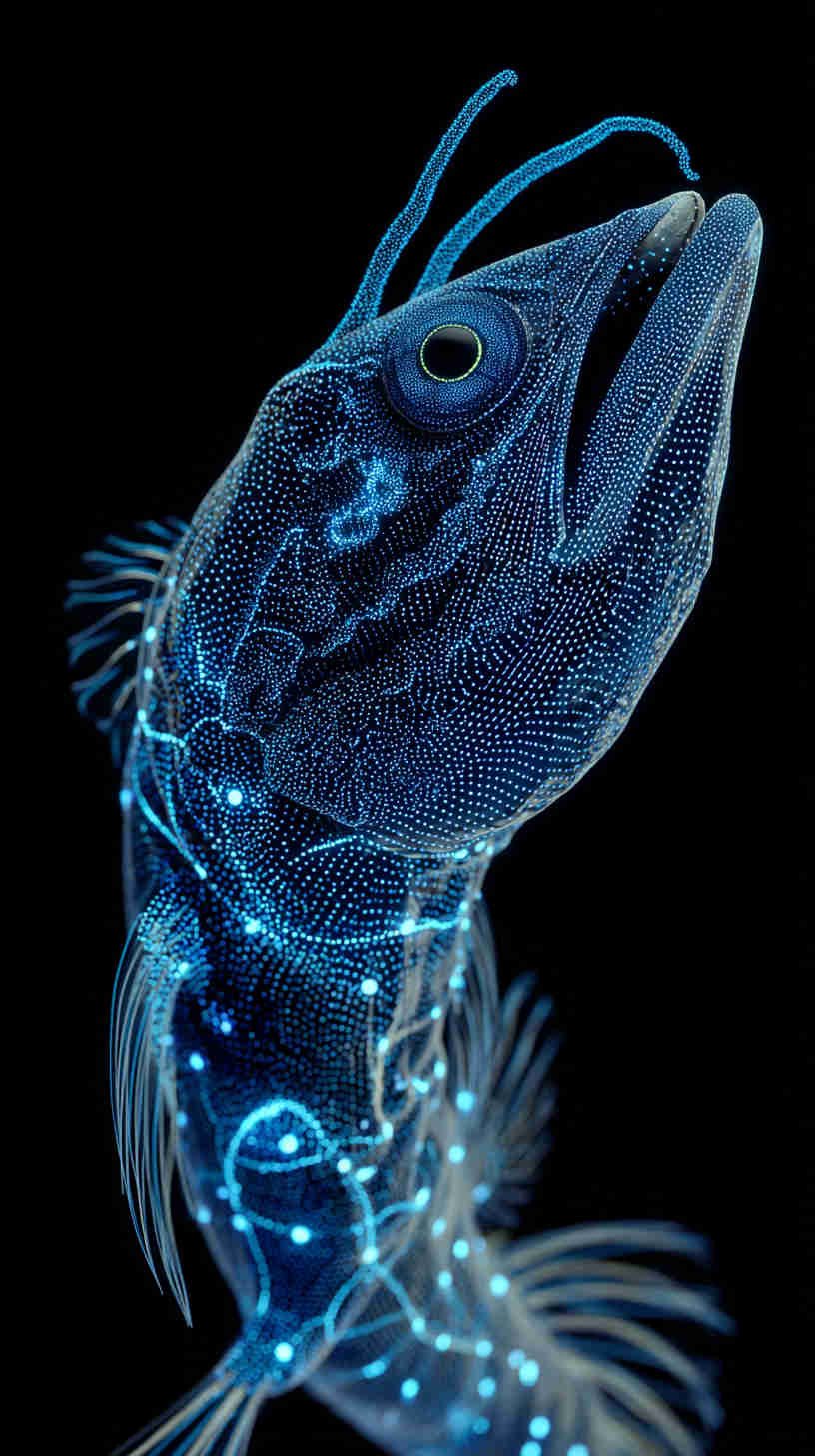 Standouts include: The anglerfish’s glowing esca attracting prey in perpetual night, comb jellies shimmering with rainbow rows, siphonophores forming colossal colonies, and barreleye fish with transparent heads revealing upward eyes.
