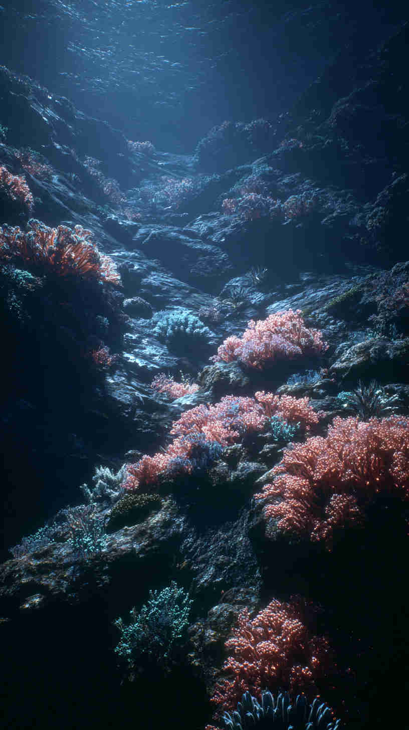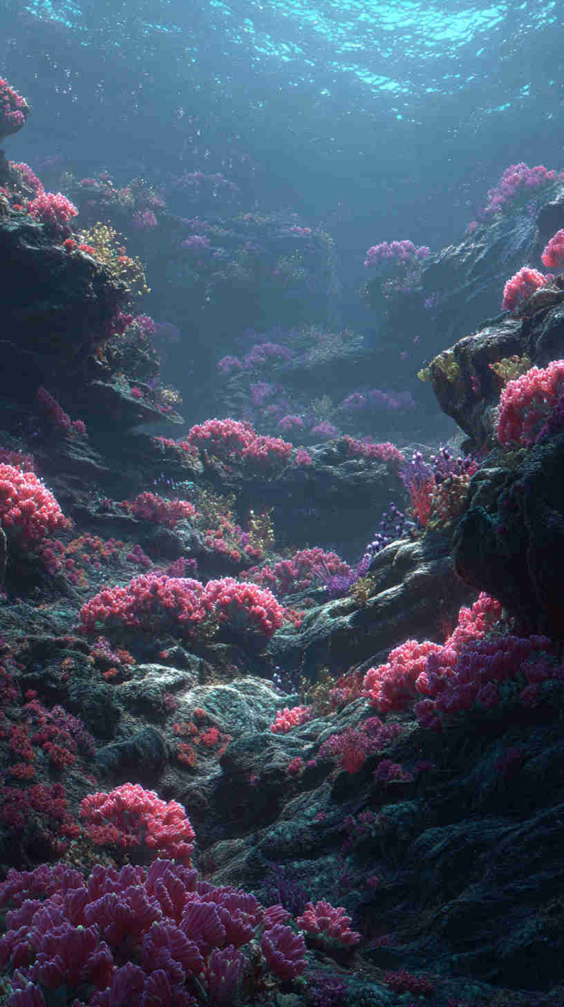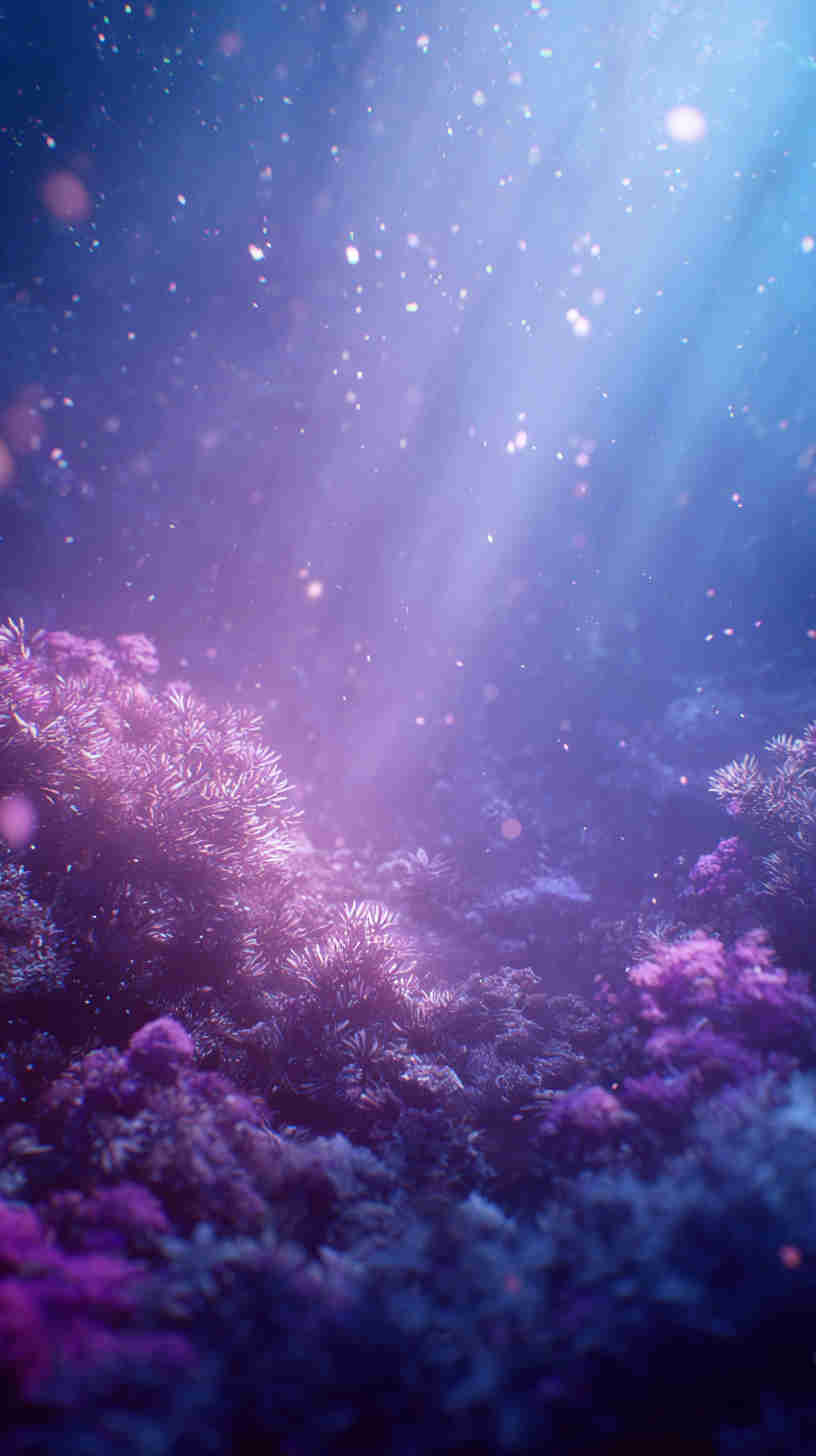 Deep ocean backgrounds draw from the therapeutic tranquility of “blue mind” theory—oceanic blues proven to reduce stress, enhance focus, and evoke vast openness. In 4K HD, creators capture the calm: Sunlit shafts piercing pristine waters, gradient blues fading into infinite indigo, minimalist underwater scenes with volumetric light and subtle motion hints.