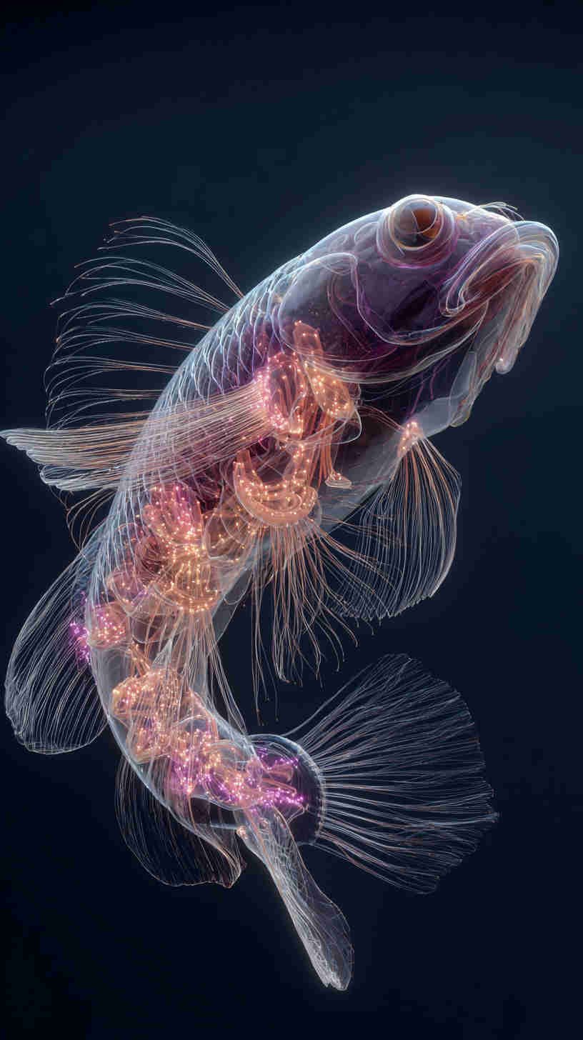 - Forensic detail captures every photophore, fin ray, tentacle filament, scale edge, and tooth barb – from the bacterial light-organ cultures inside anglerfish esca to the individual light-producing cells on ctenophores and siphonophores.