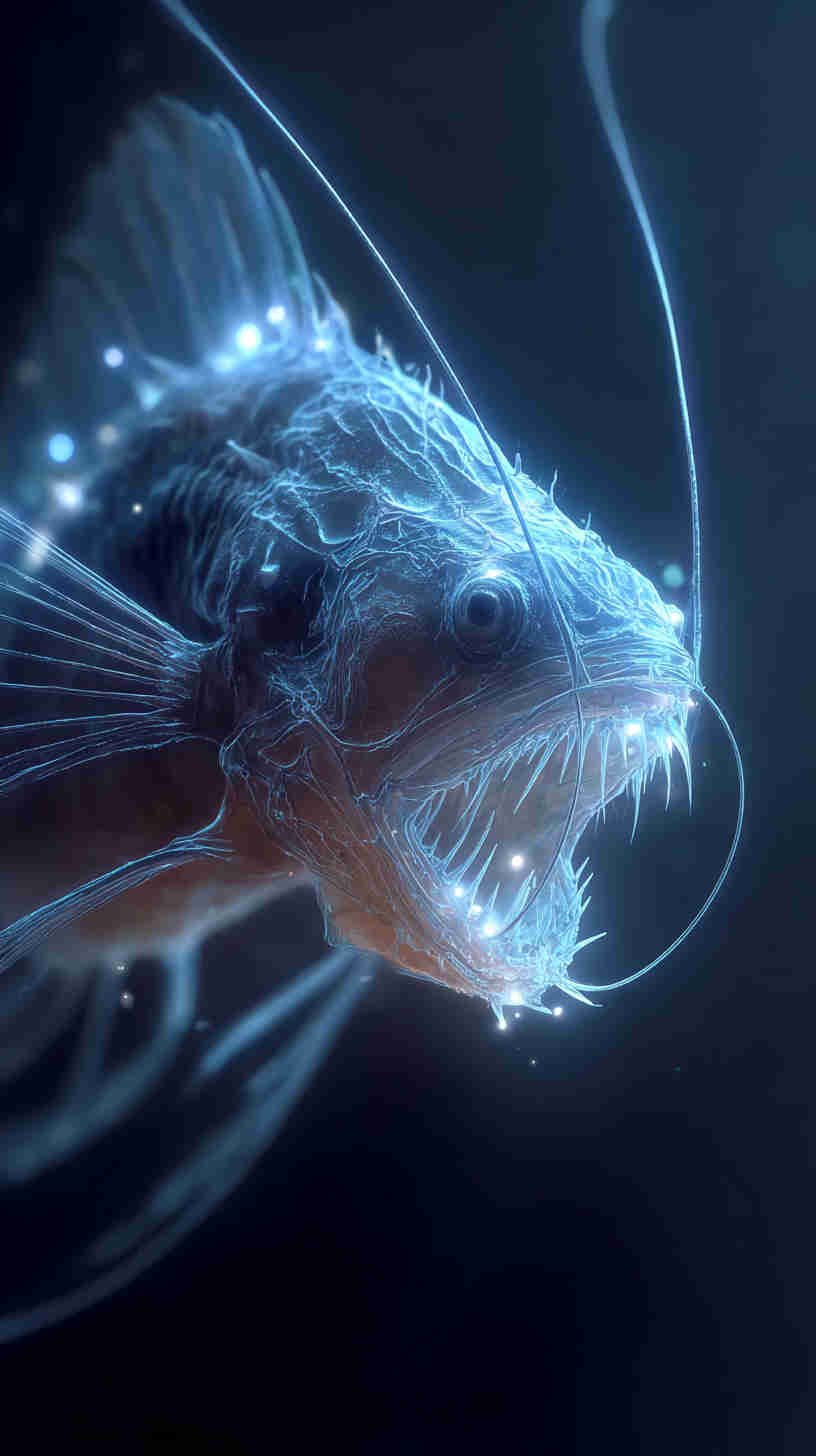Social media timelines and science channels regularly showcase wide-angle shots of bioluminescent jellyfish drifting like floating lanterns, macro portraits of dragonfish with their eerie red searchlight organs, black-and-white studies of tripod fish balanced on elongated pelvic fins over sediment plains, surreal fluorescence images of deep corals and sponges glowing under UV, and haunting close-ups of anglerfish where only the lure and teeth emerge from pure black. Natural history museums now display large-format deep-sea photography as fine art, while digital artists create enhanced, cinematic interpretations of real expedition stills—preserving anatomical accuracy while adding atmospheric marine snow, volumetric lighting, and perfect depth of field.