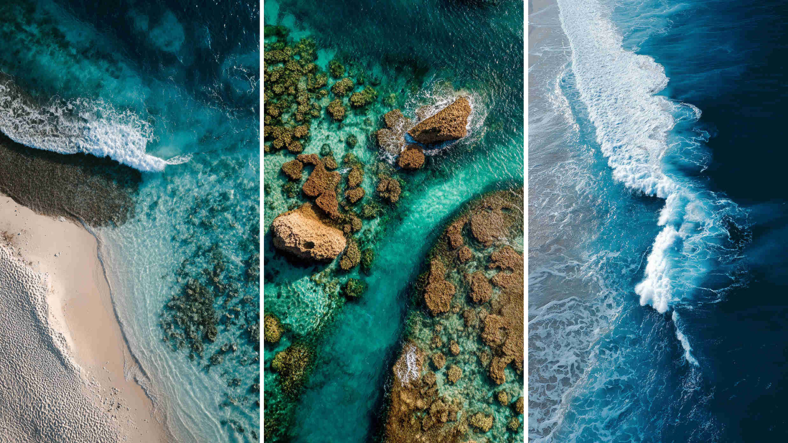 - Color fidelity — Accurate white balance and subtle gradients: the cool cyan of tropical shallows, the deep steel-blue of open ocean, the milky turquoise of glacial silt water, the soft lavender-gray of overcast days.