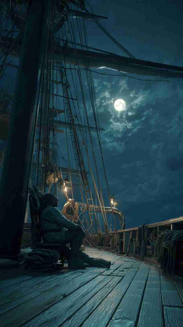 - Stormy Skies: Dramatic skies with rolling clouds or lightning strikes add intensity to the scene, emphasizing the challenges of life at sea.