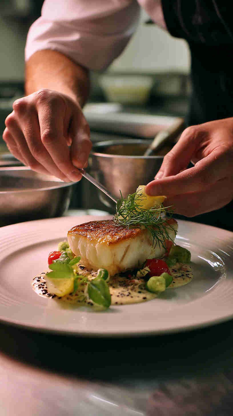 - Extreme close-up texture – 8K reveals individual flake separation in poached white fish, crispy batter micro-bubbles, glistening soy glaze on sushi, subtle char marks on grilled skin, pearl-like scallop texture, moist interior of perfectly steamed fillet.