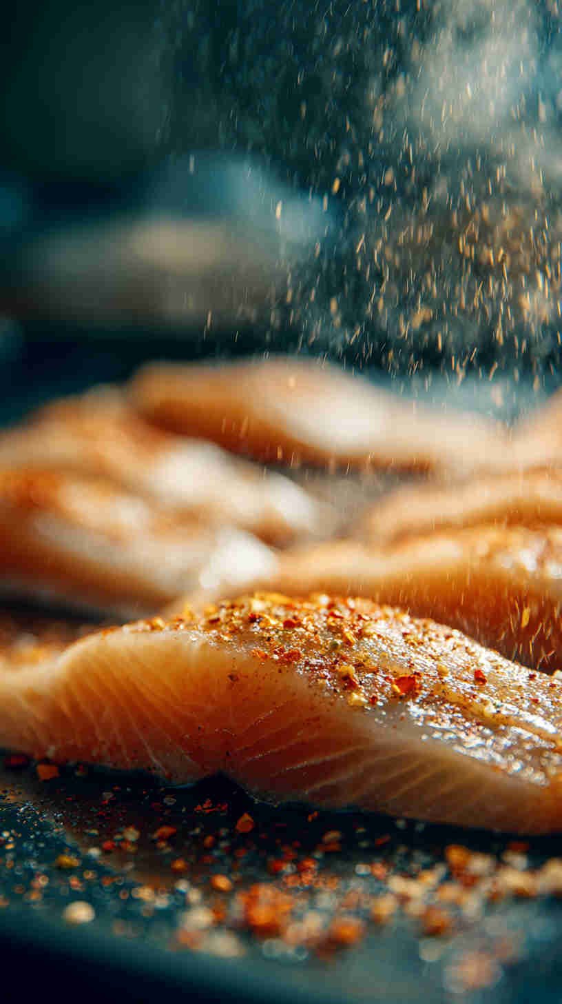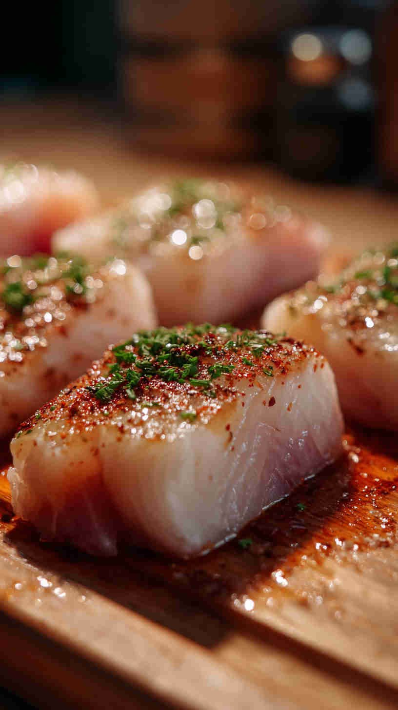 - Extreme close-up texture — 8K reveals individual flake separation in poached white fish, crispy skin micro-bubbles, glistening marinade on grilled fillets, pearl-like scallop texture, moist interior of perfectly steamed portions.