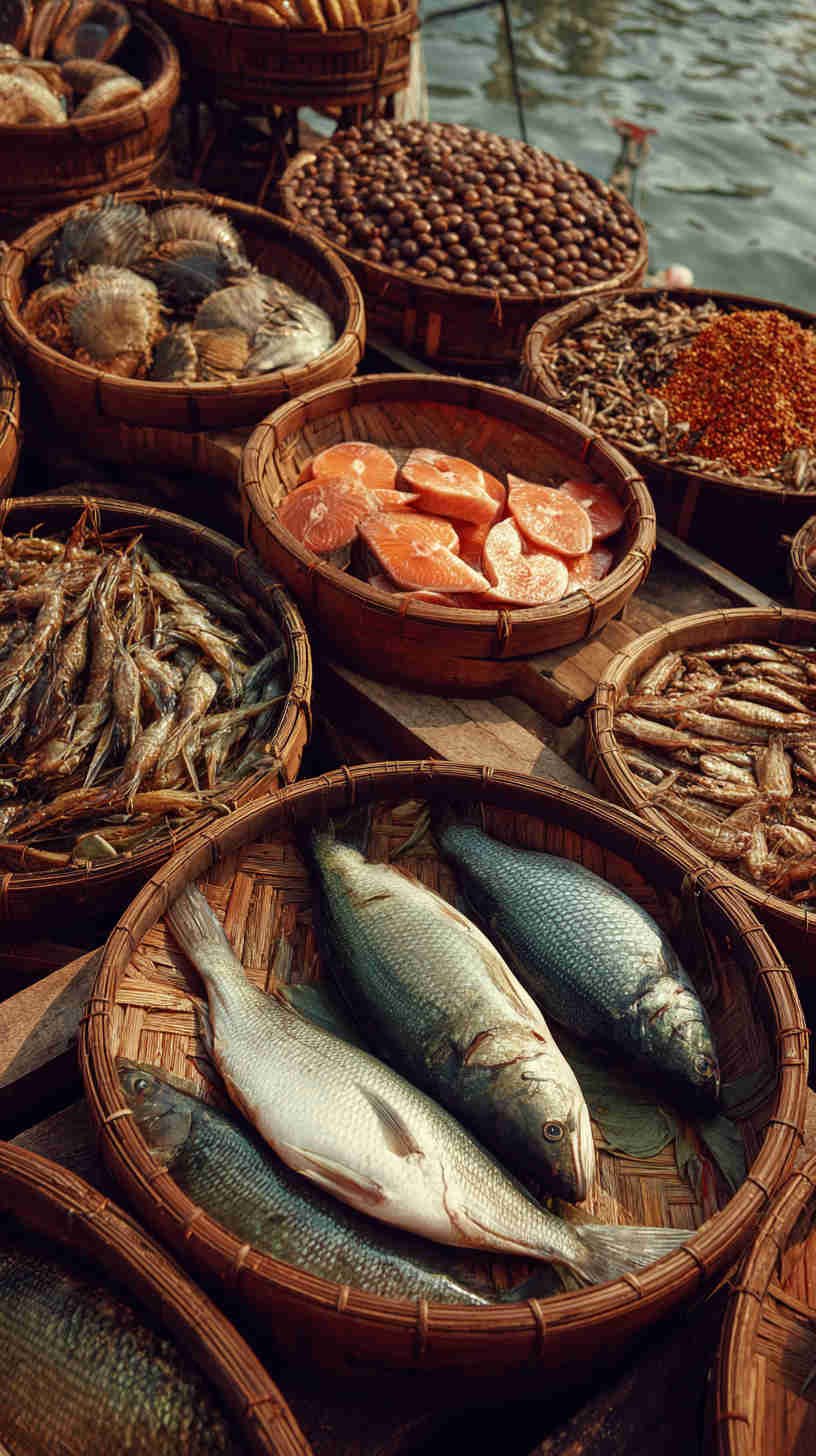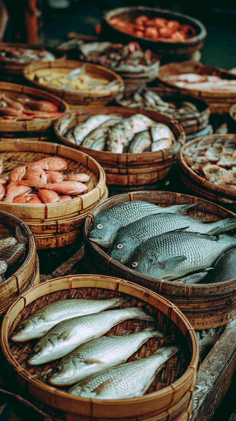 The most loved images today avoid overly staged excess. They favor honesty and restraint: a single grilled fish with minimal garnish, raw sashimi with simple soy and ginger, family-style whole fish sharing plates, beach picnic setups with fresh catch cooked over open fire, and market-fresh displays on ice with subtle mist.