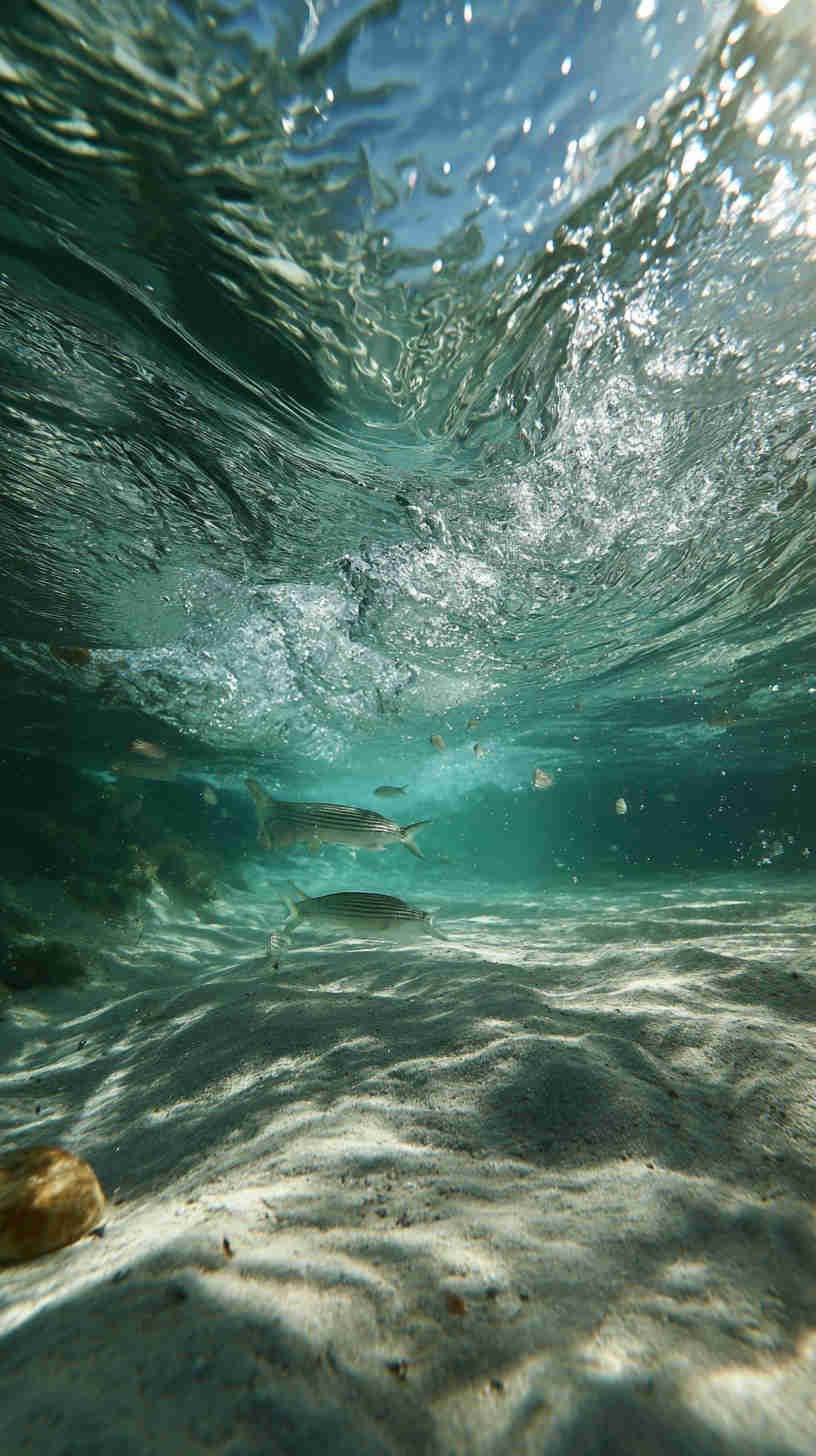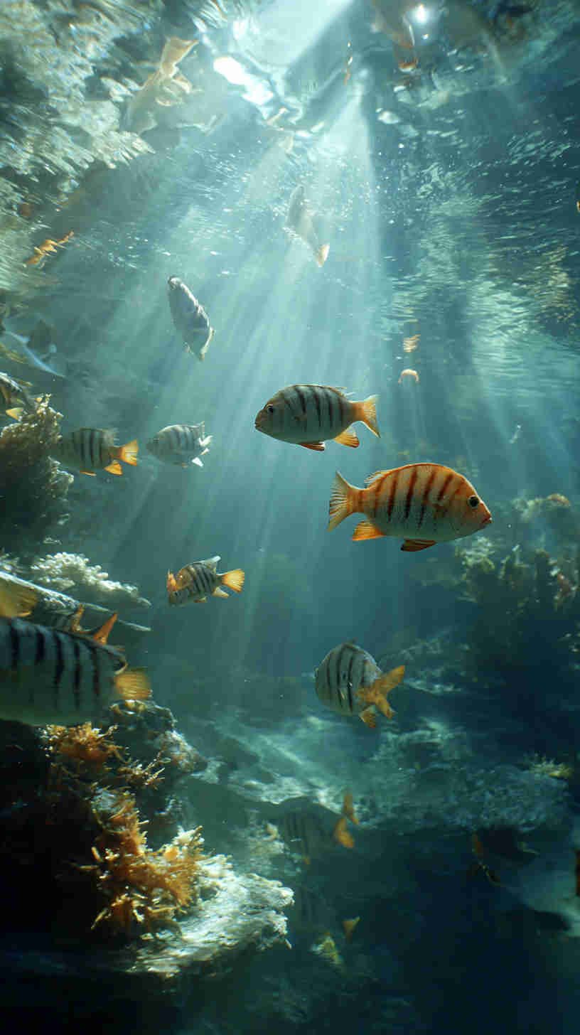 - Authentic underwater lighting — Realistic volumetric god-rays from surface waves, soft blue-hour diffusion at depth, golden-hour shafts in shallows, subtle caustics dancing on sandy bottoms, faint bioluminescent accents in deeper scenes.