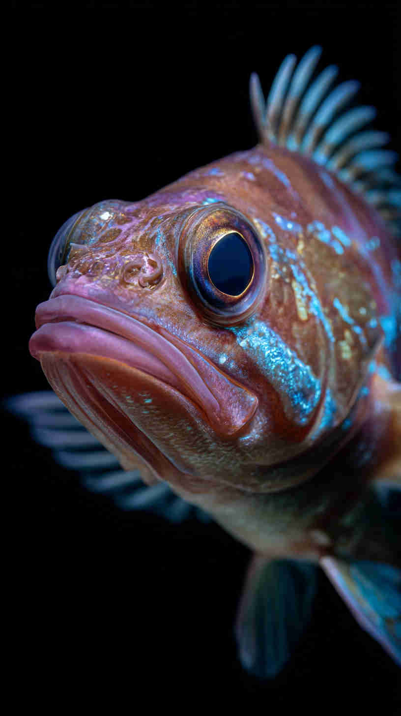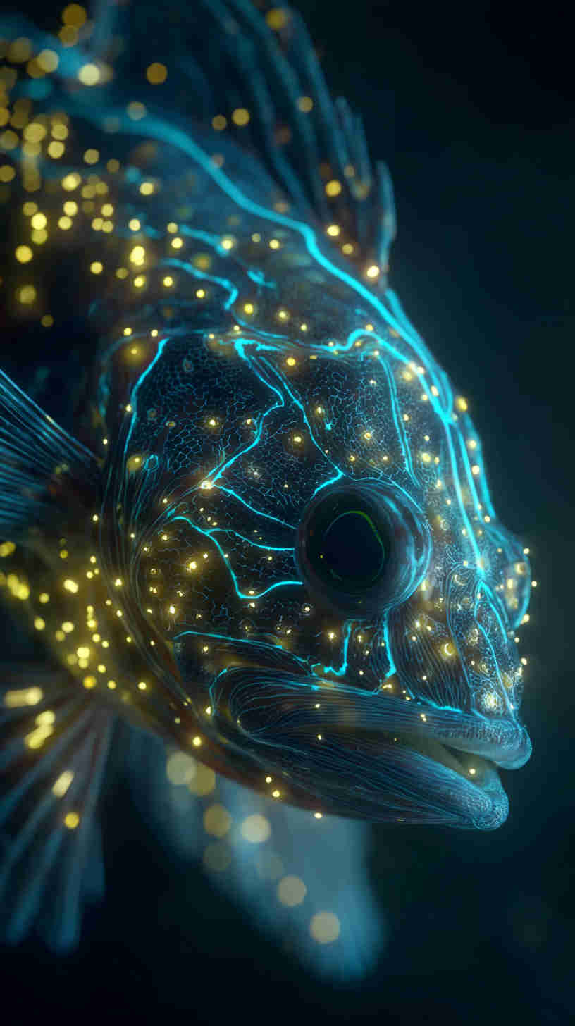 - Hyper-detailed yet natural rendering ā 8K captures reveal micro-details (individual scale edges, eye reflections, gill plate texture, plankton particles) while maintaining soft focus and natural depth-of-field for dreamy realism.