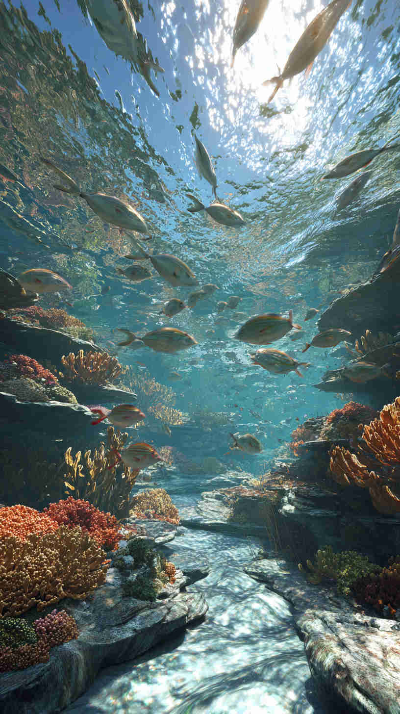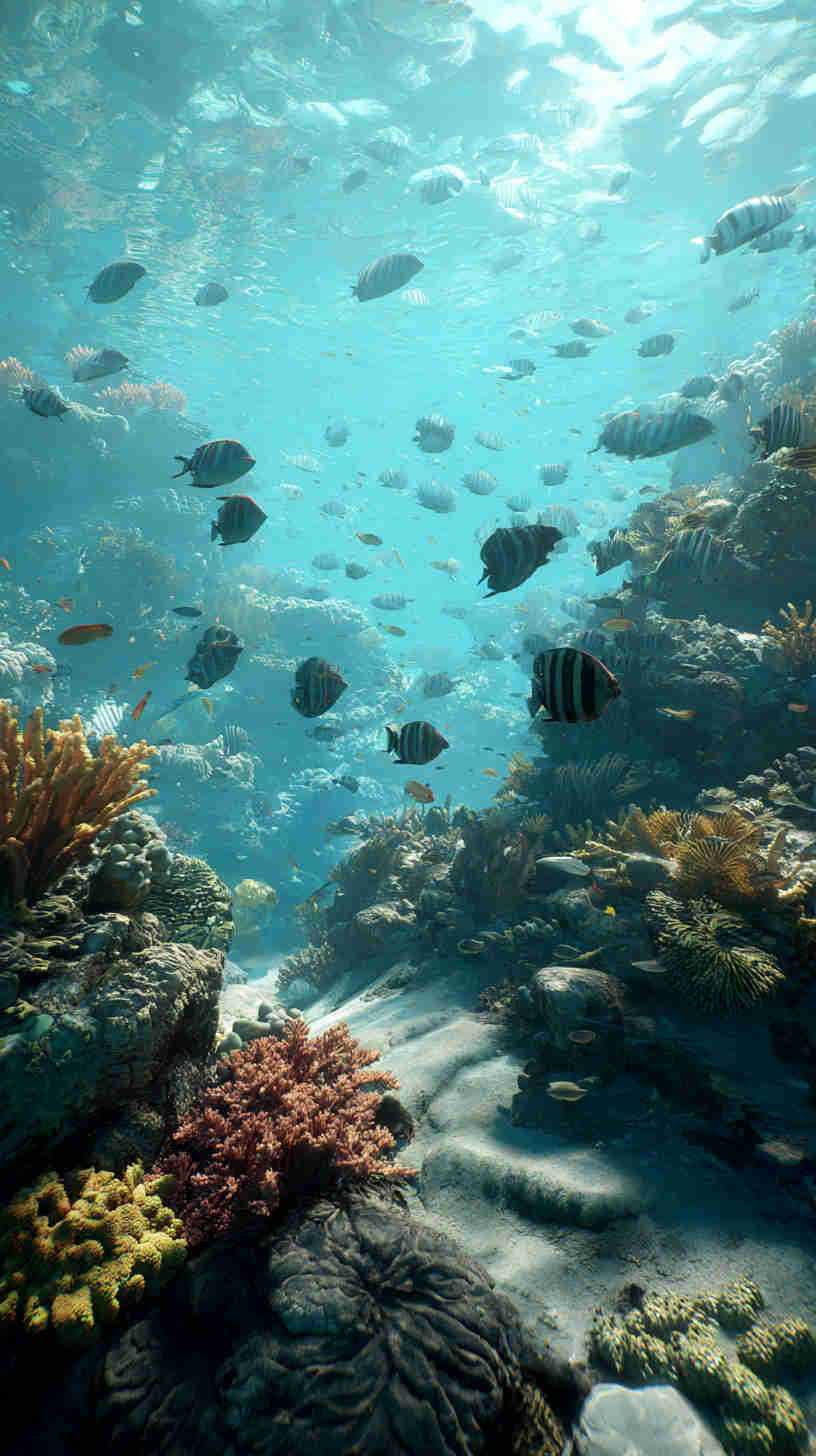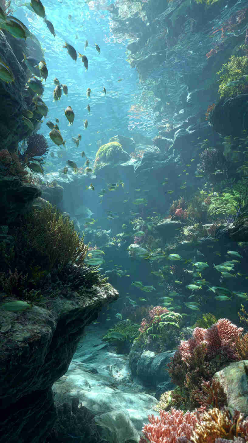 - Authentic underwater lighting ā Realistic volumetric god-rays from surface waves, soft blue-hour diffusion at depth, golden-hour shafts in shallows, subtle caustics dancing on sandy bottoms, faint bioluminescent accents in deeper scenes.