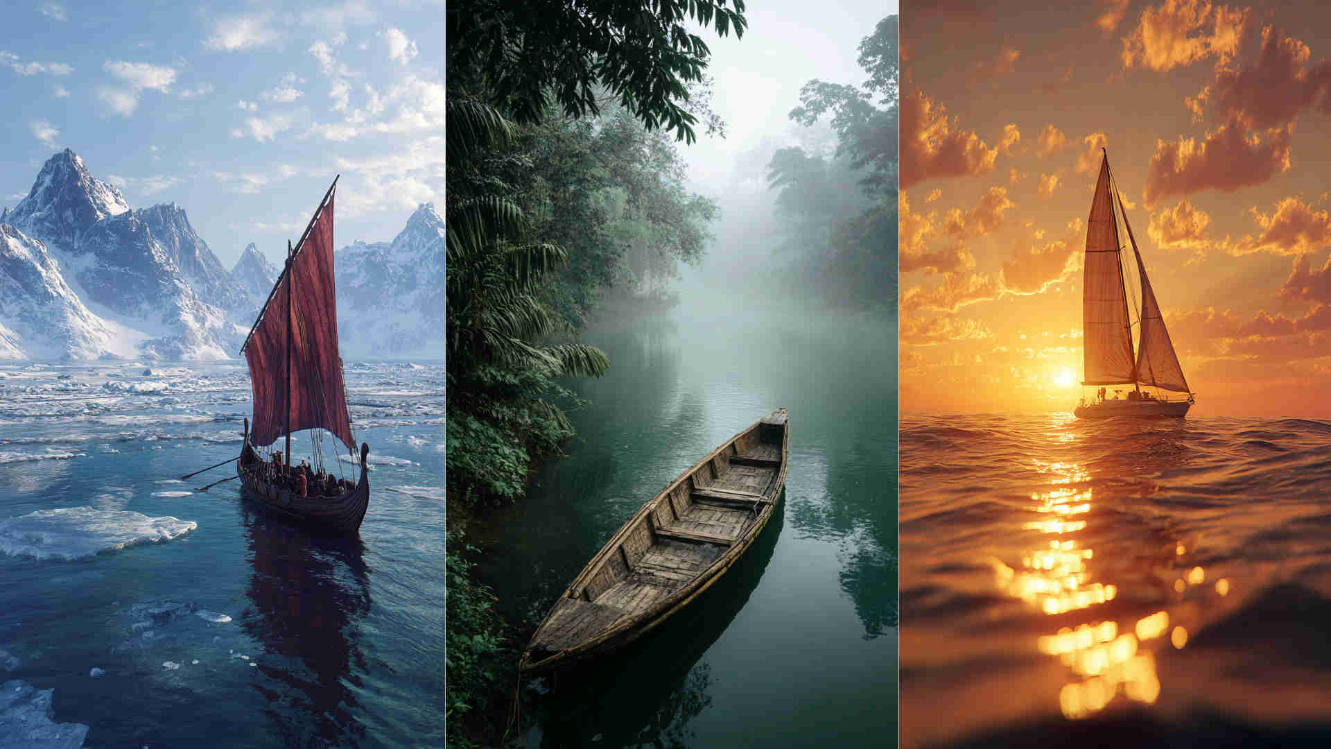 - Tropical Maritime: Boats set against coral reefs, palm-lined beaches, or vibrant island scenes for a sunny, resort-like vibe.