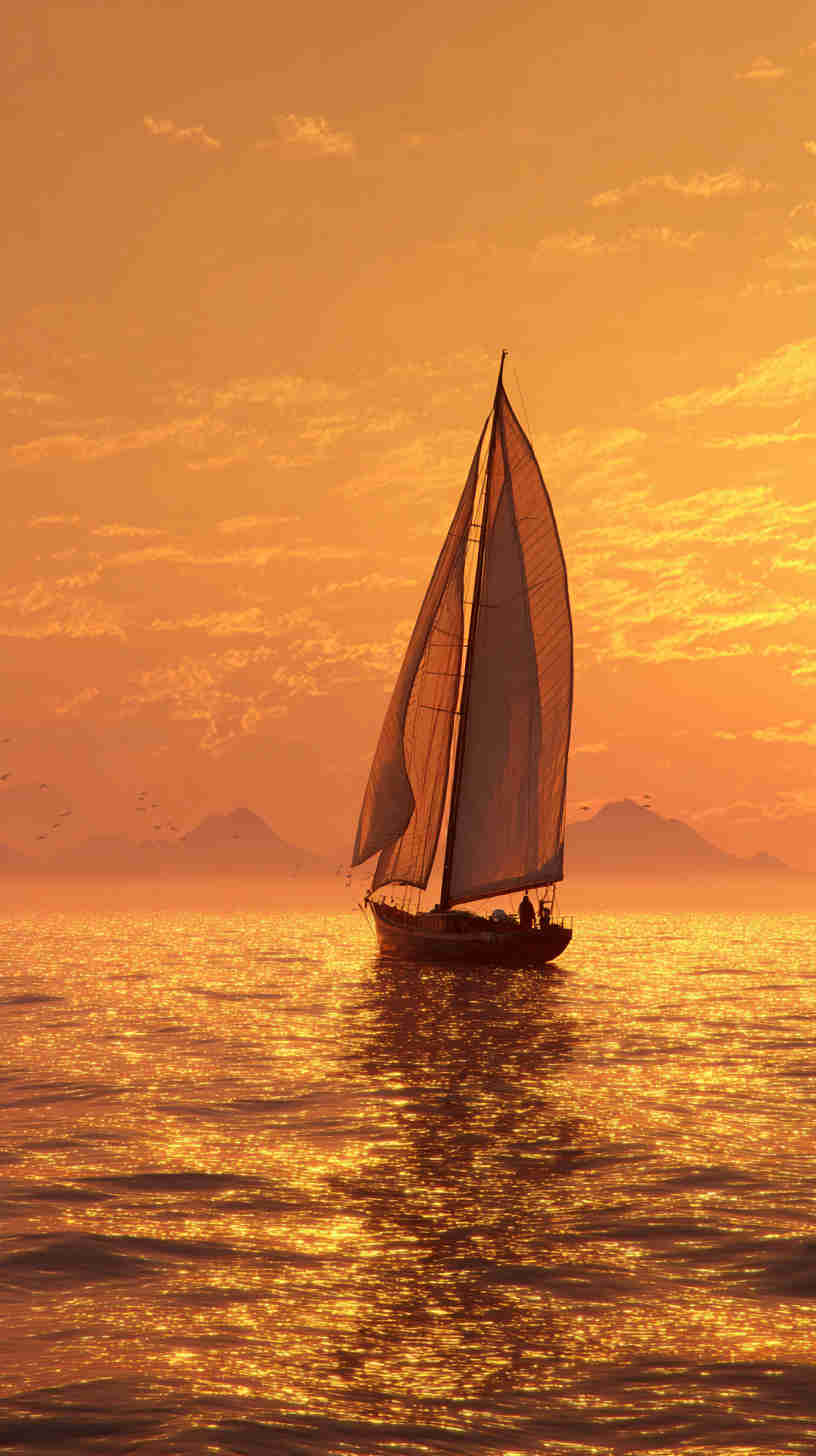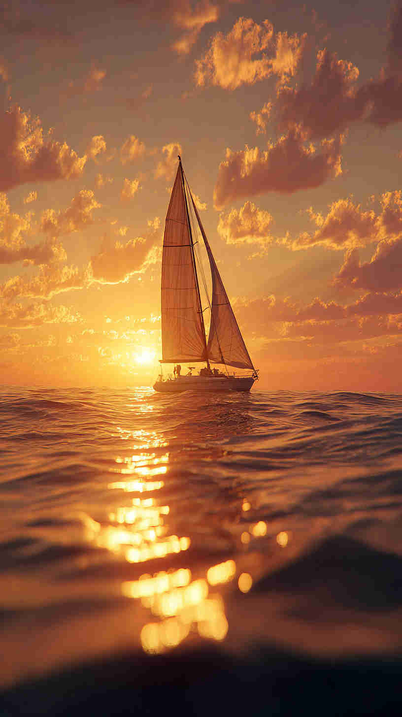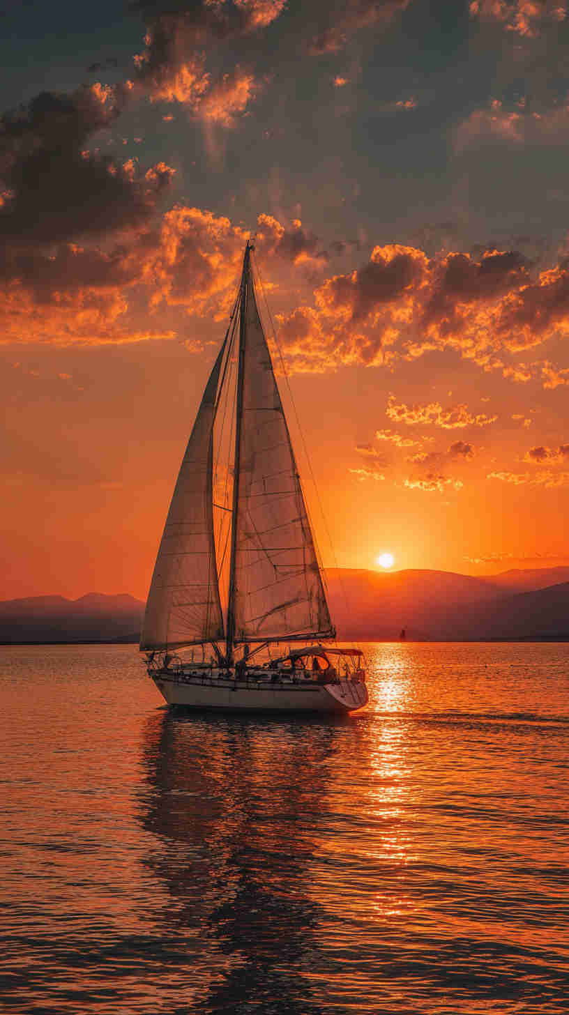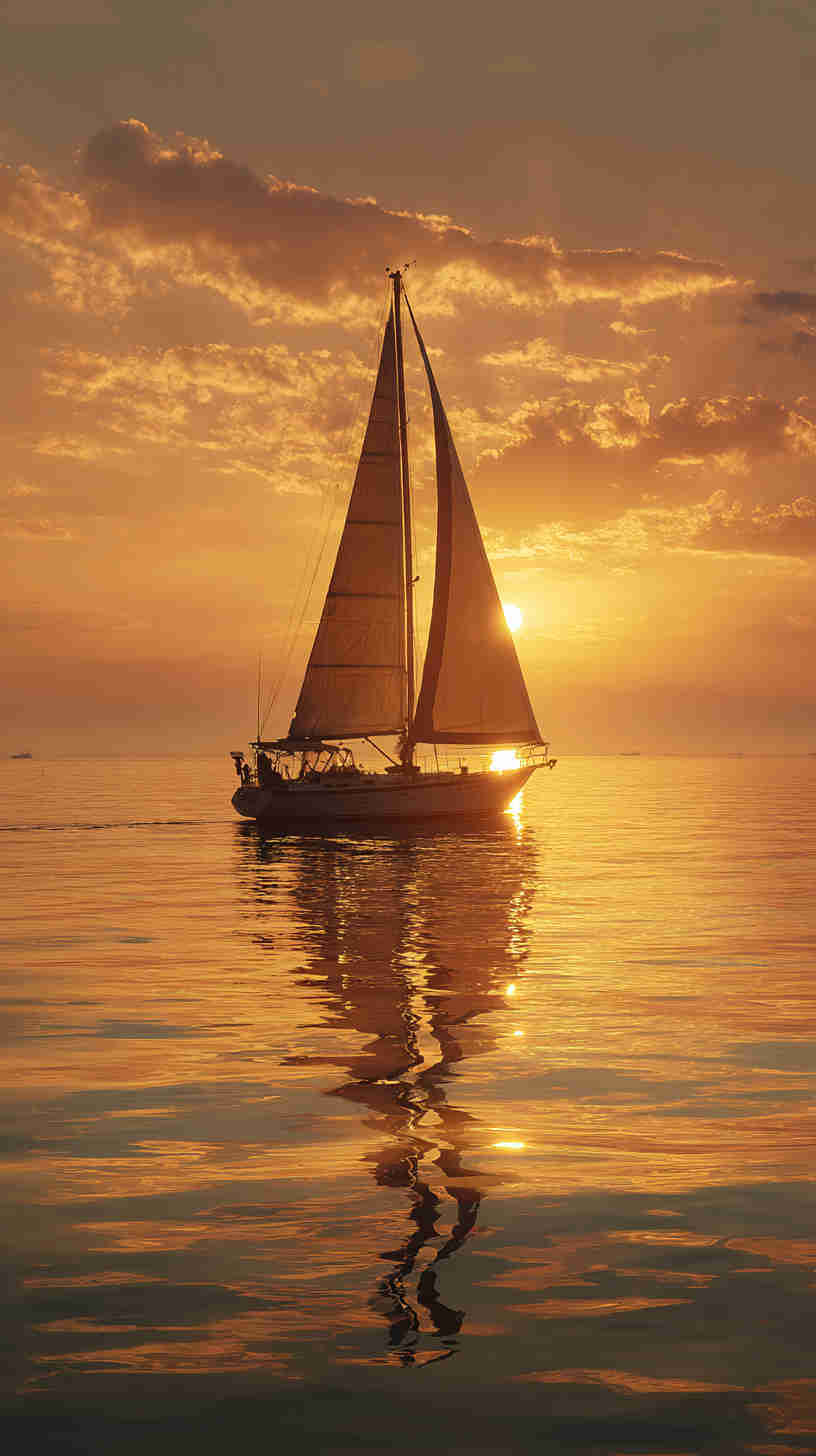 - Classic Sailboats: Vintage sailboats with billowing sails set against calm seas or dramatic sunsets, evoking timeless maritime romance.