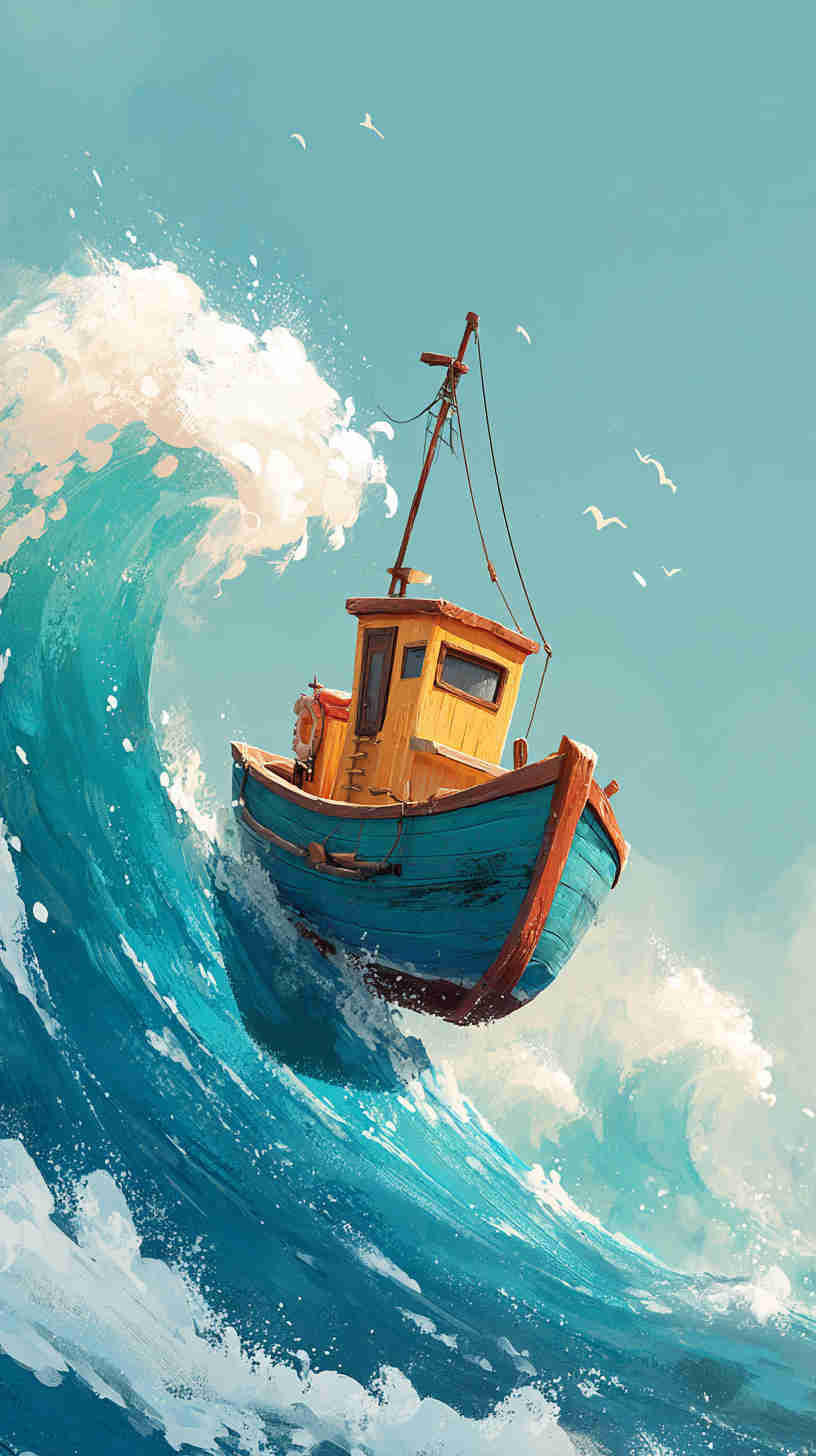 - Rustic Fishing Boats: Weathered boats bobbing in animated harbors or rocky shores, capturing the charm of coastal life.