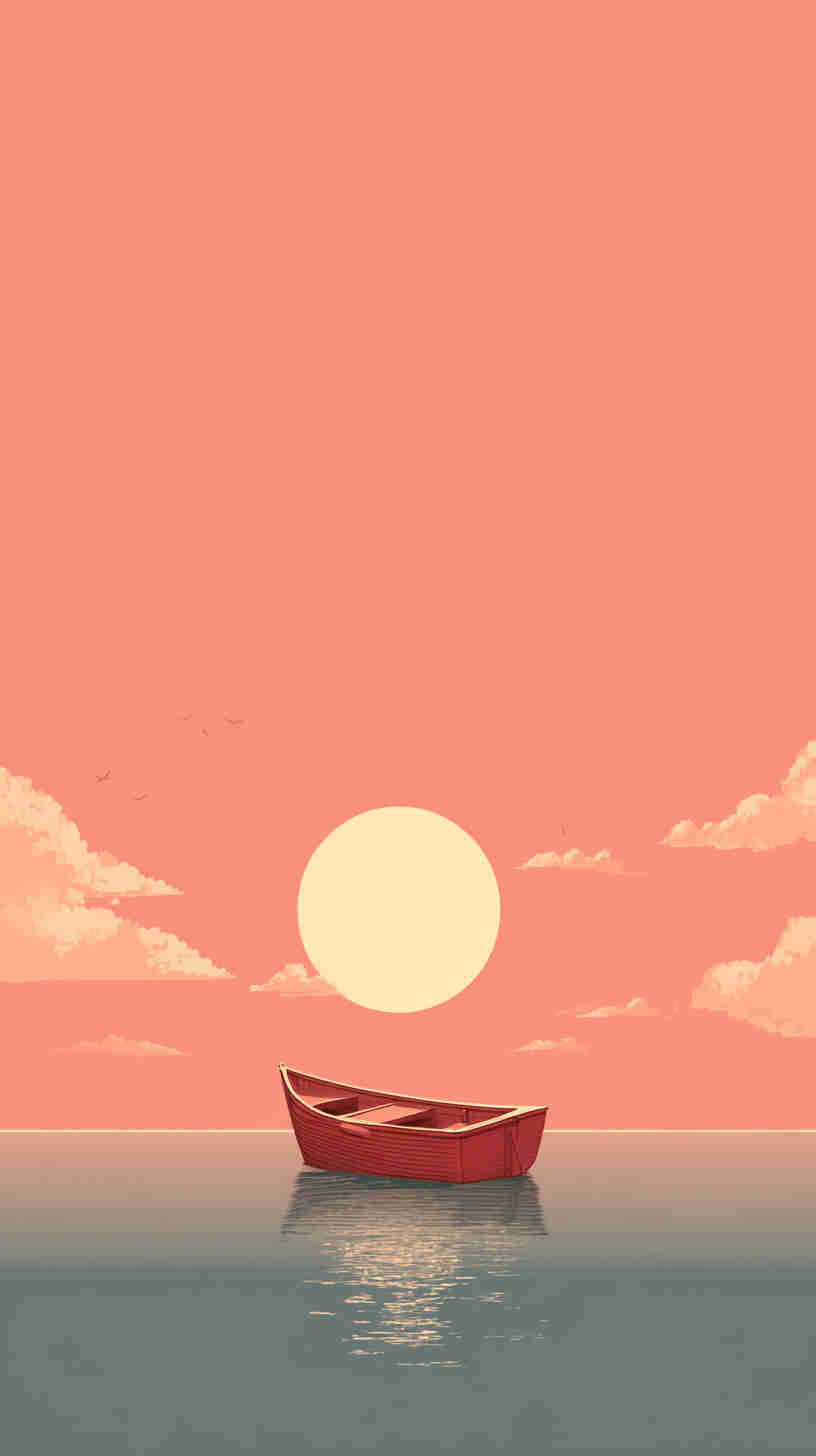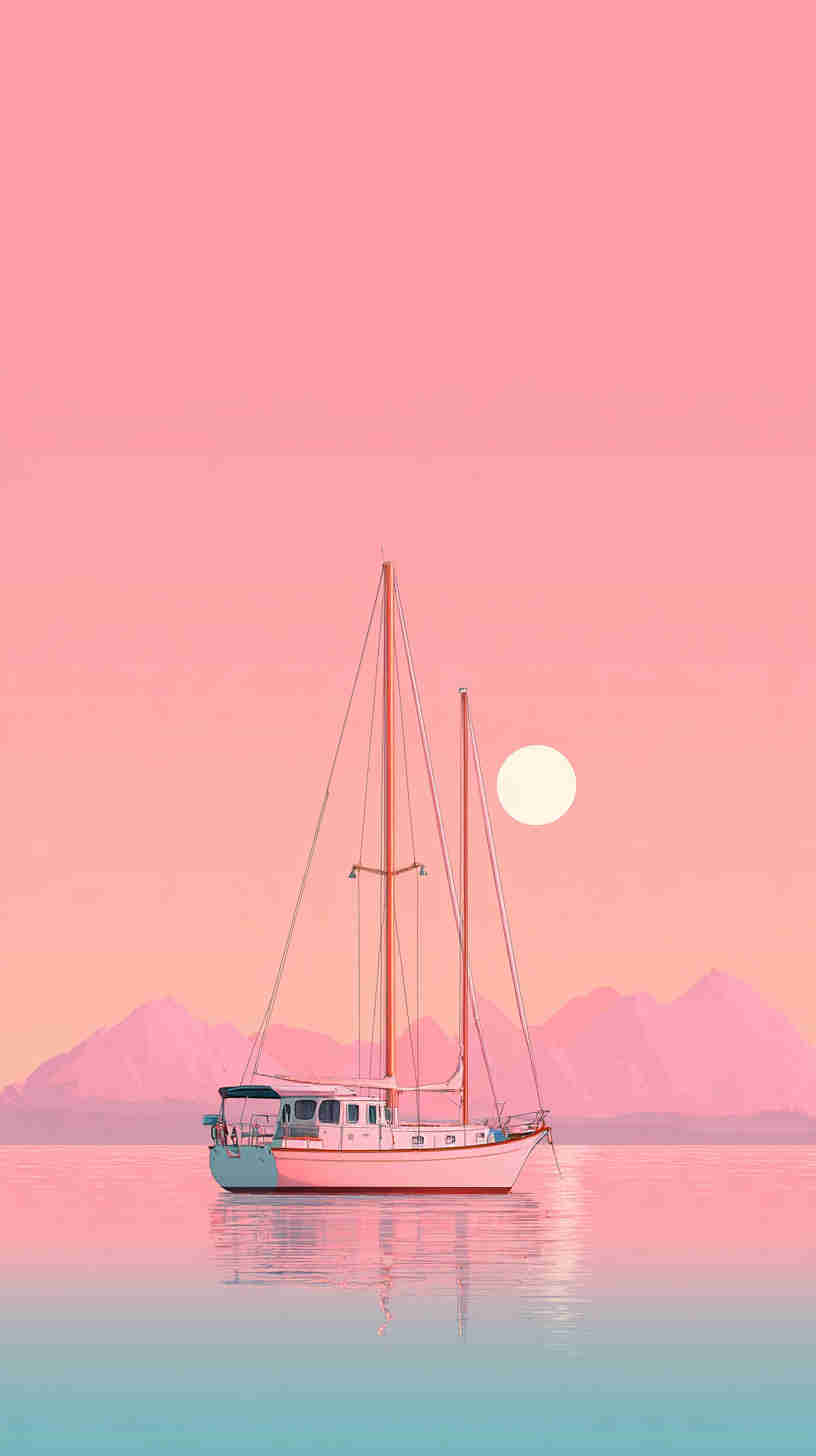 In the bedroom, animated wallpapers depicting boats against tranquil, moving ocean scenes or soft sunset horizons create a calming environment. A minimalist sailboat design with gently rippling water promotes relaxation, perfect for unwinding.