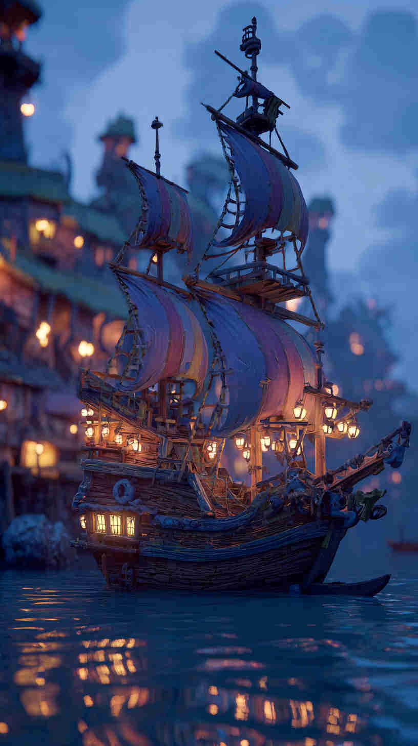 - Textured Details: Animated textures like shimmering water, billowing sails, or weathered wood that add depth and authenticity to the design.