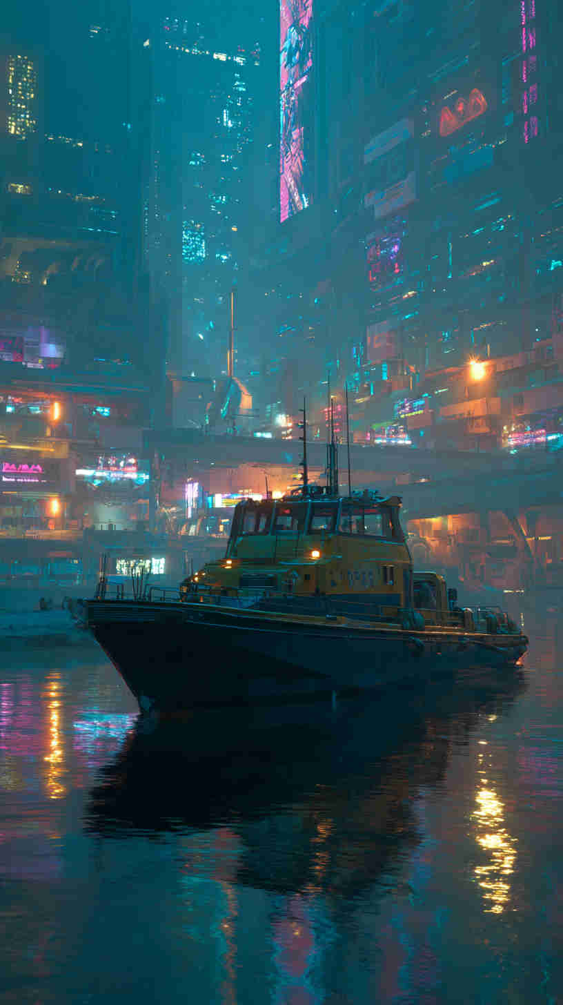 - Urban Harbor Tech: Modern boats in bustling city harbors, paired with sleek headsets and urban skylines, combining tech productivity with maritime energy.