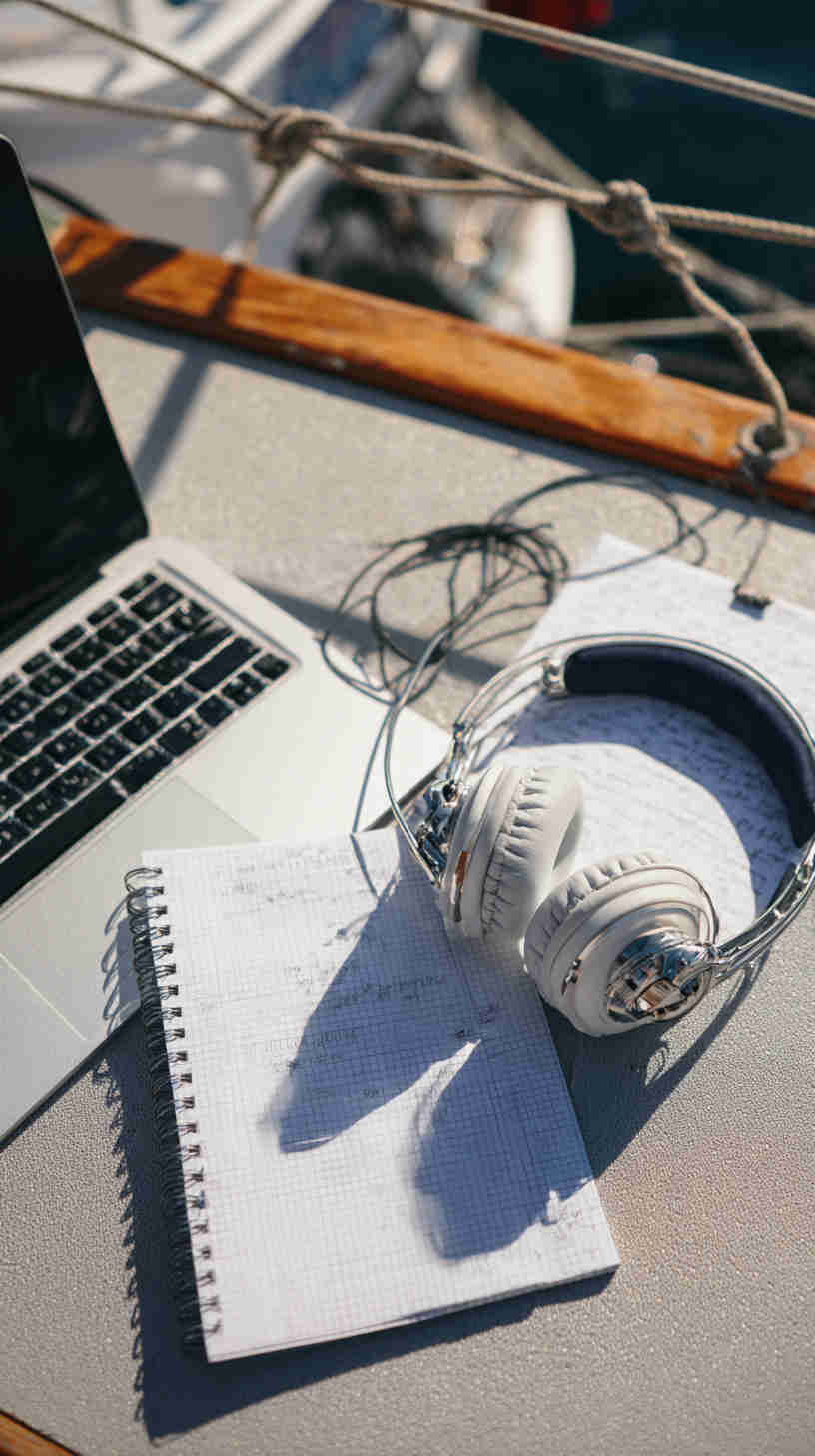 - Minimalist Nautical-Tech: Sleek sailboats with minimalist headsets on clean, modern desks, set against monochromatic or soft coastal backdrops for an understated aesthetic.