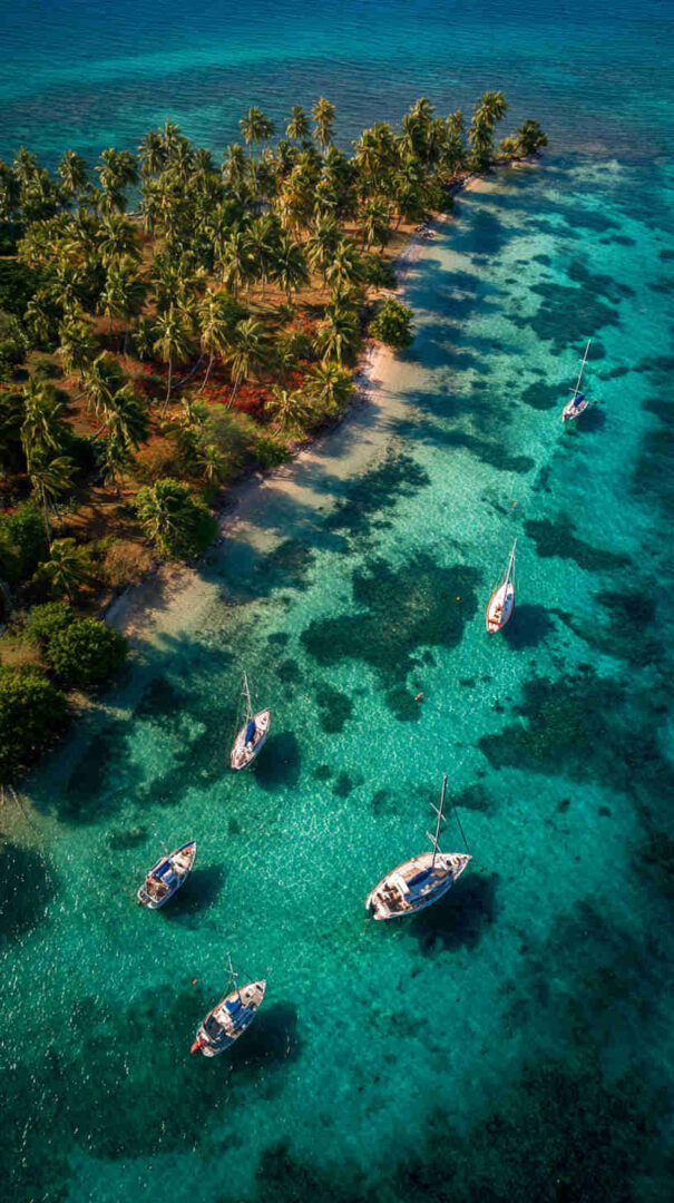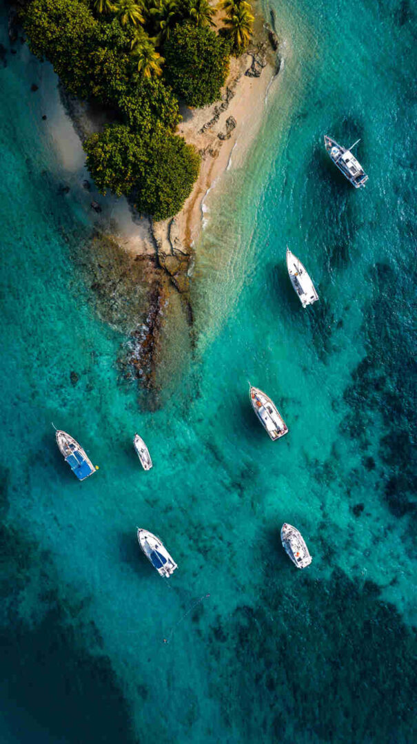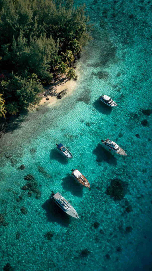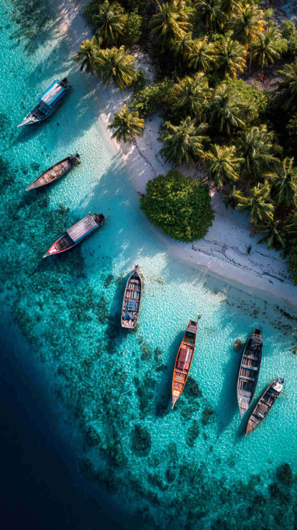 - Tropical Boat Escapes: Vibrant boats in tropical waters with coral reefs or palm-lined shores, evoking an exotic, adventurous feel.
