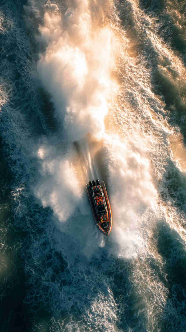 - Dynamic Elements: Details like rippling waves, seabirds, or distant horizons, emphasizing the boat’s role in exploration and leisure.