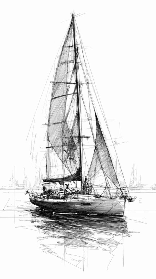 - Classic Sailboat Scenes: Detailed sailboats with billowing sails and rigging, set in coastal waters or sunsets, ideal for capturing timeless nautical charm in sketches.