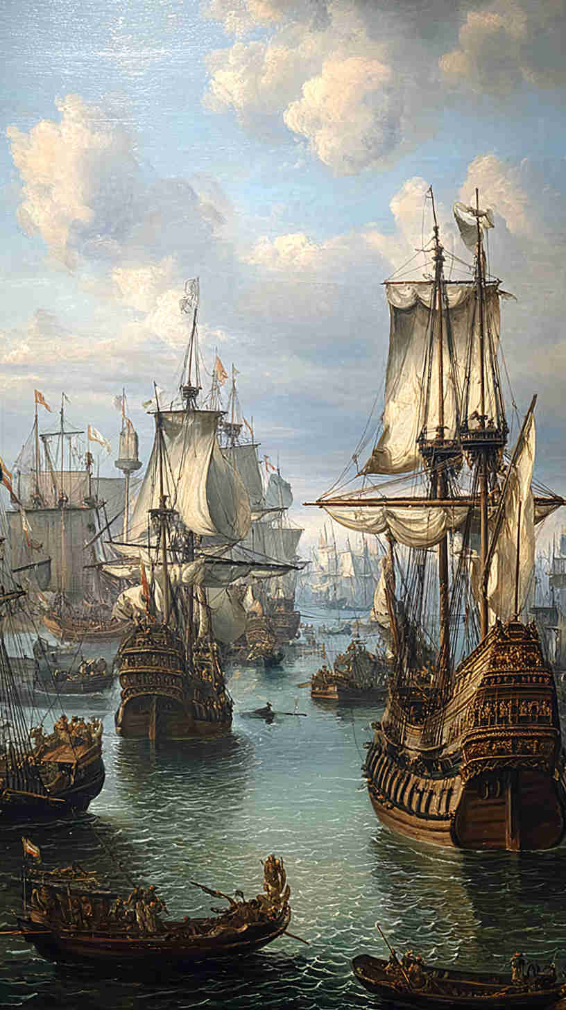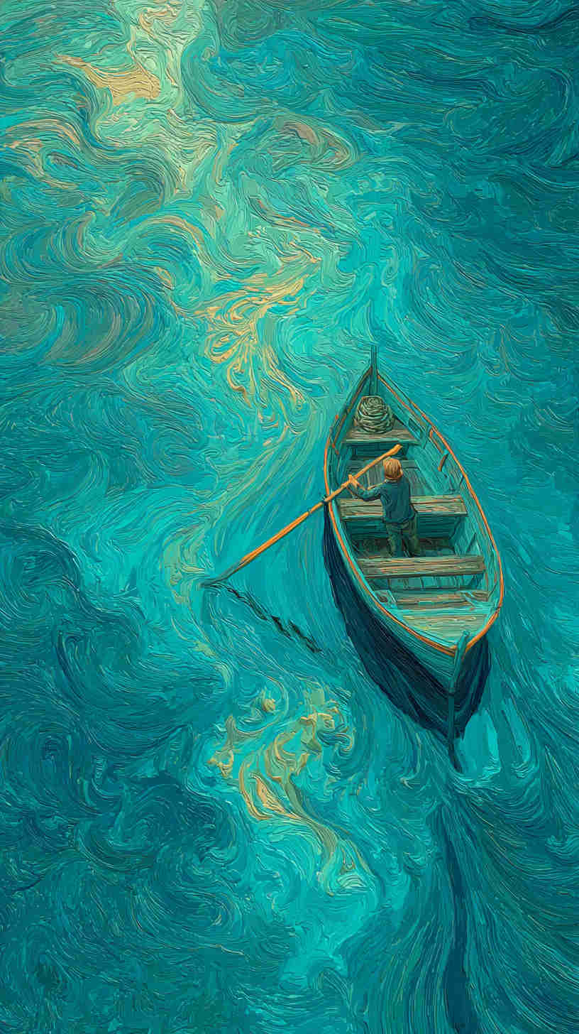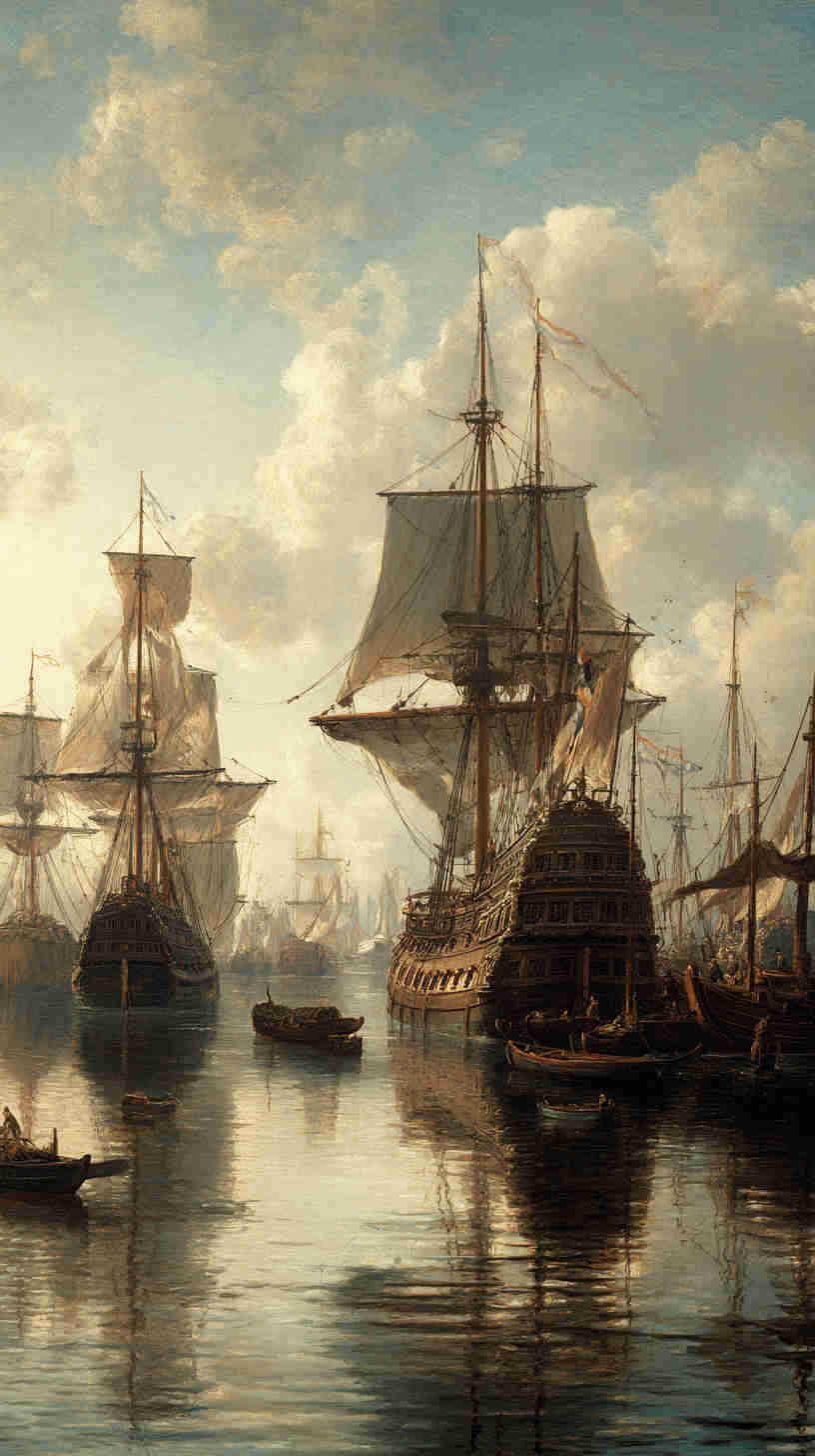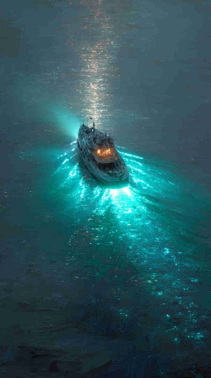 - Artistic Details: Elements like textured brushstrokes, light reflections, or stylized waves, emphasizing the painting’s creative style and nautical theme.