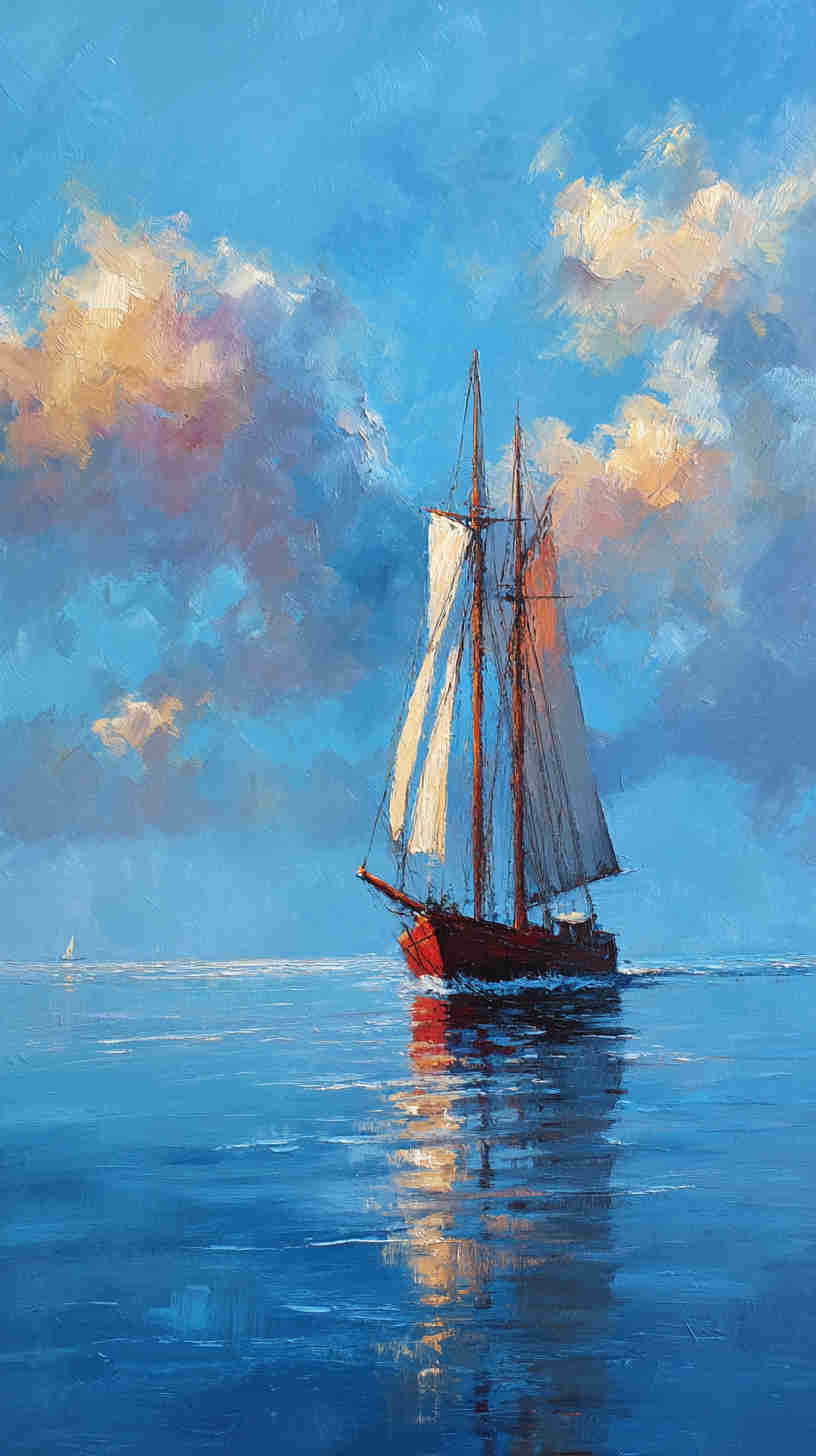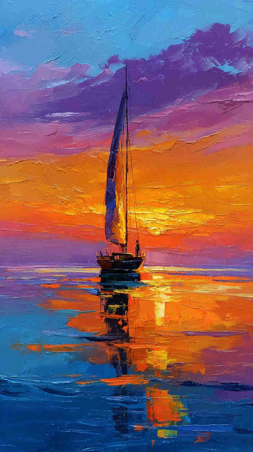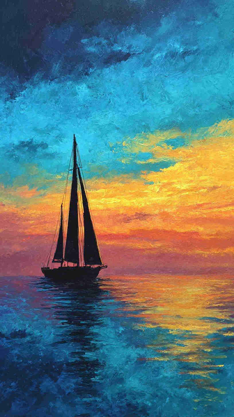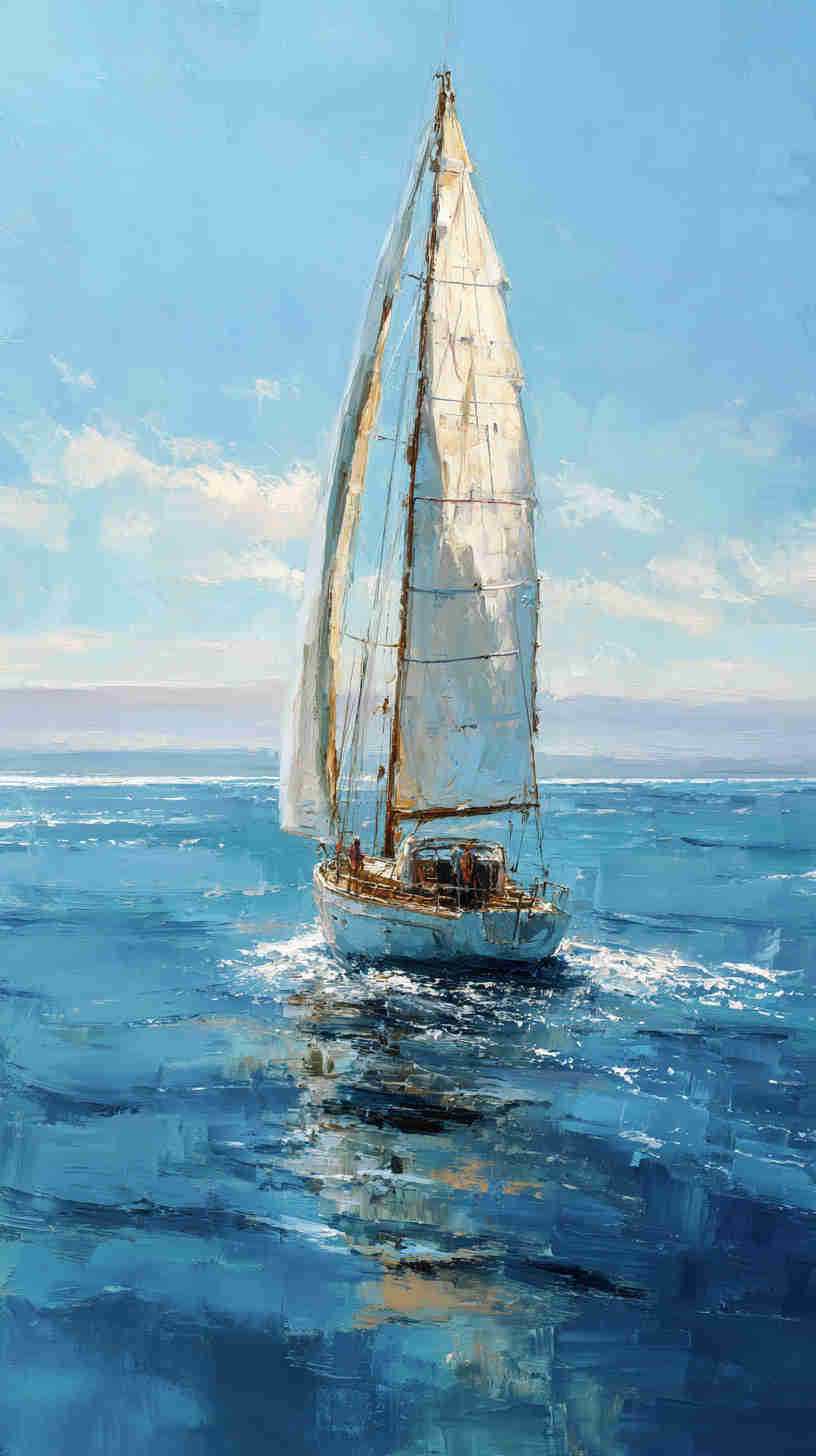 - Impressionistic Sailboats: Soft, brushstroke-heavy sailboats on shimmering seas, evoking a dreamy, Monet-inspired aesthetic.