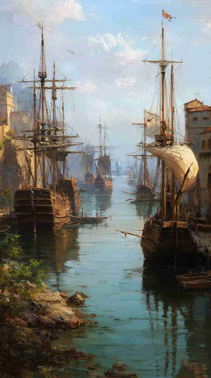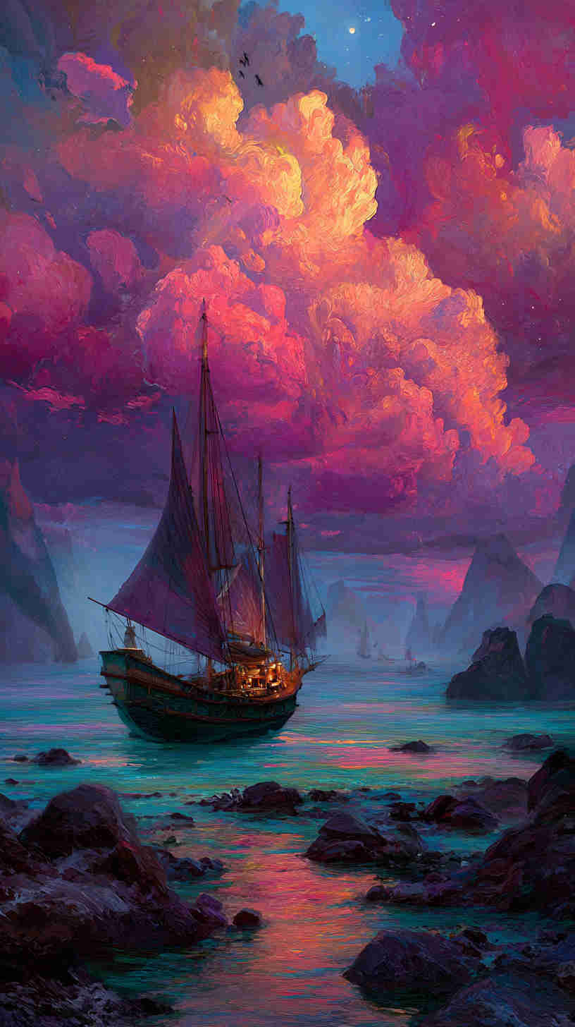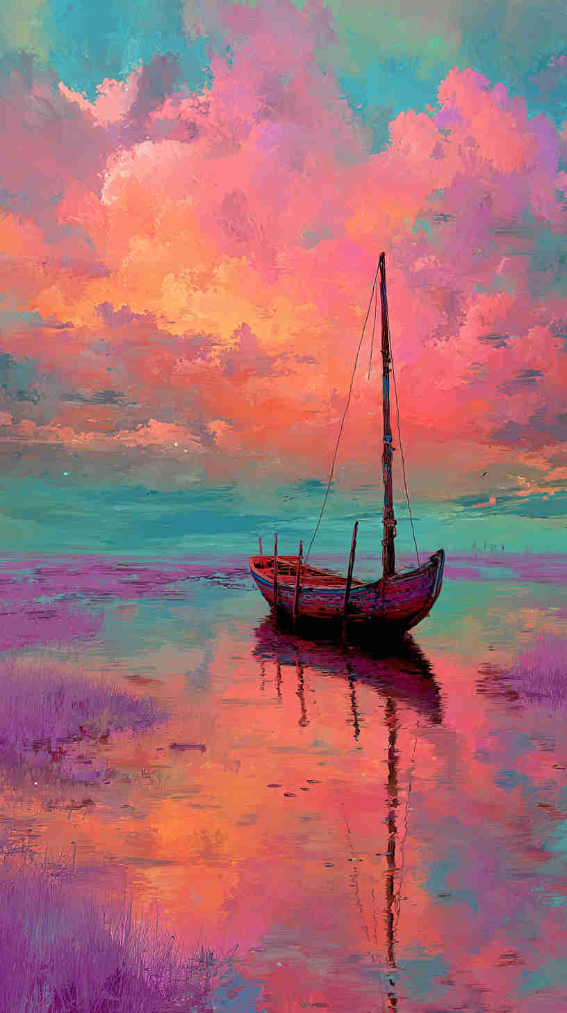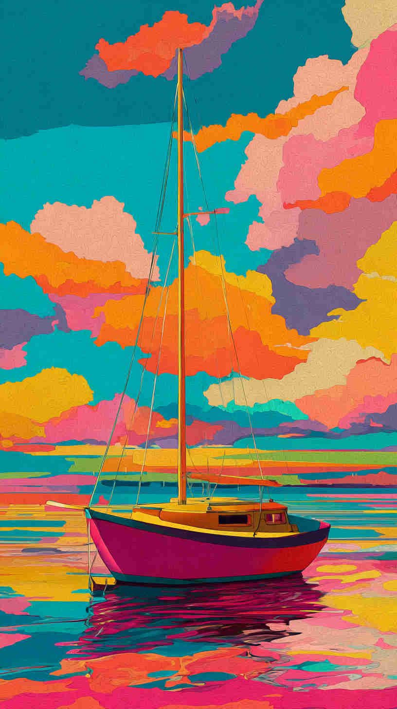 - Impressionistic Sailboats: Soft, brushstroke-heavy sailboats on shimmering seas, evoking a dreamy, Monet-inspired aesthetic.