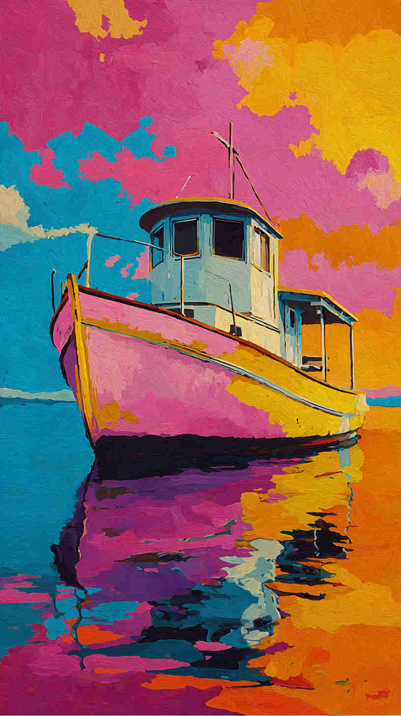 - Abstract Nautical Scenes: Bold, abstract depictions of boats with vibrant colors and geometric shapes, blending modern art with maritime themes.