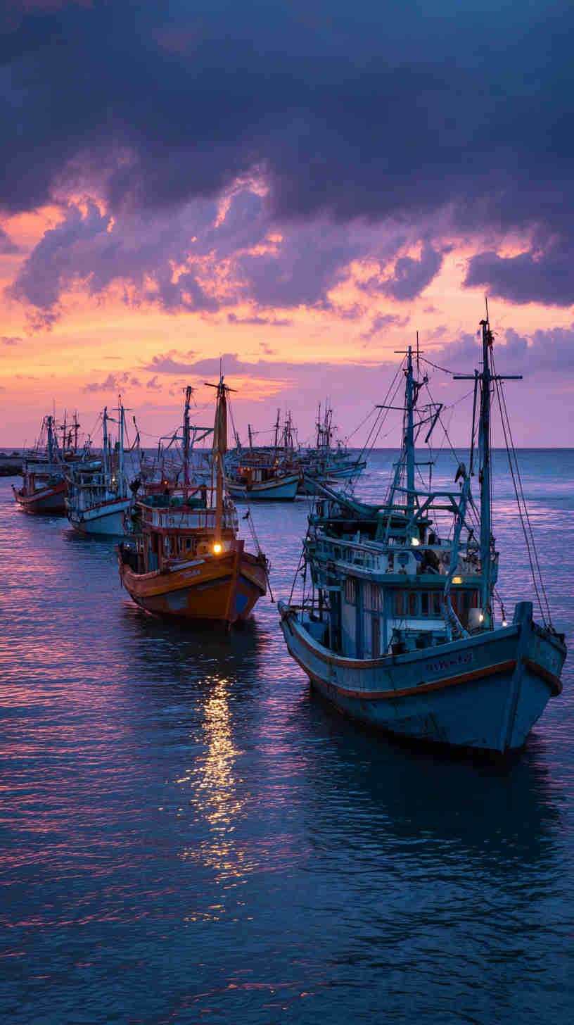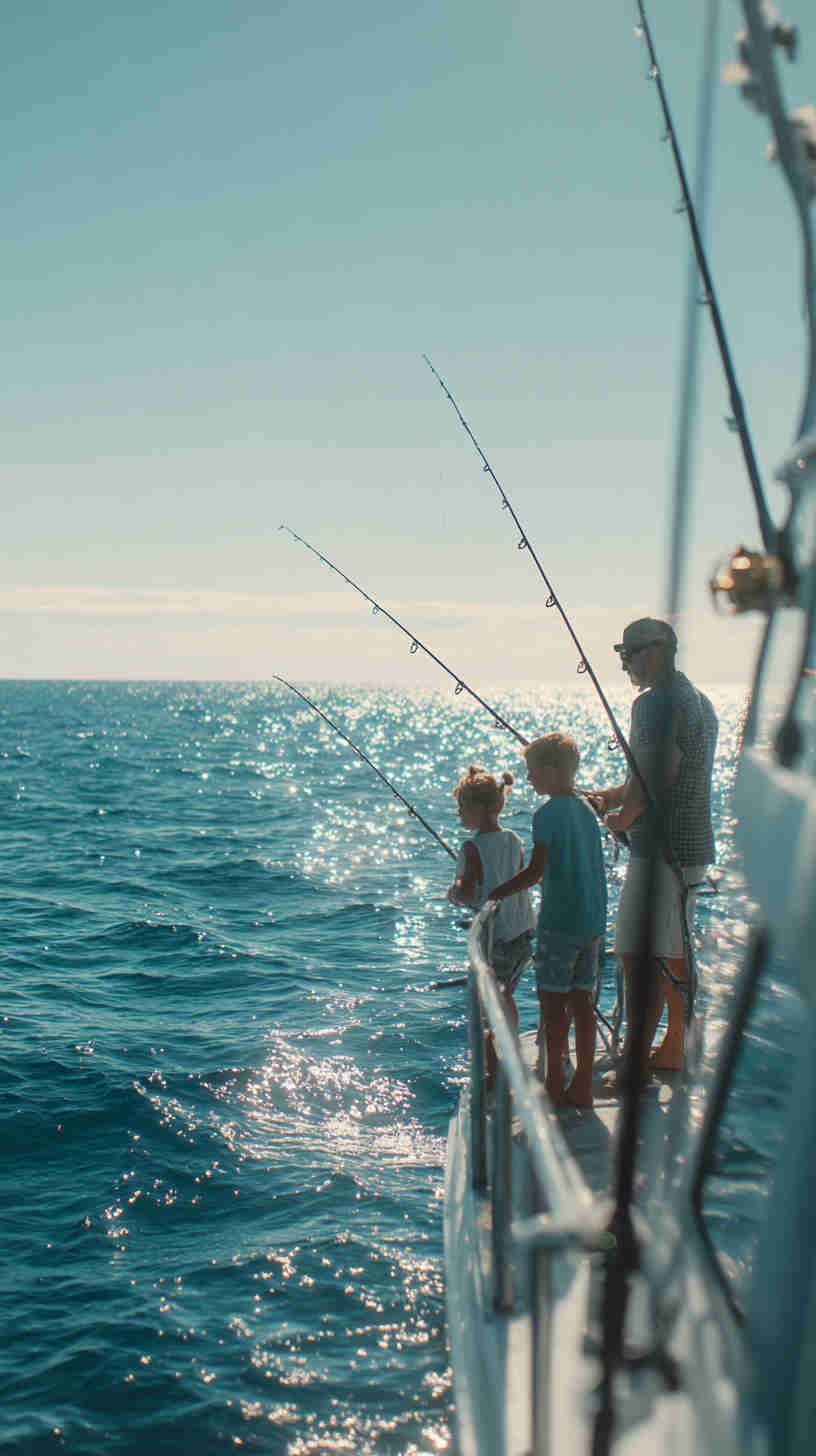 - Lighting is masterful: golden-hour backlighting on fighting chairs and outriggers, dramatic side-lighting during blue-water runs, moody overcast skies that make white hulls glow against steel-gray water.